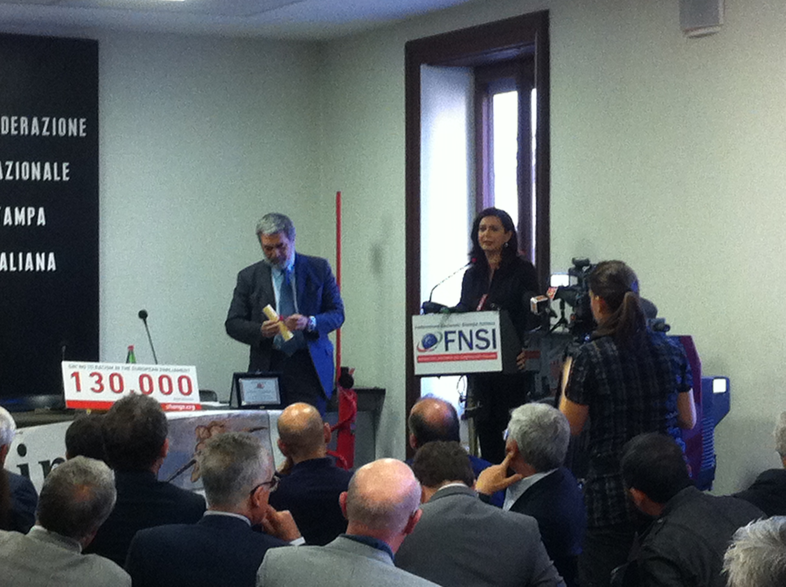 “Ringrazio Articolo 21 per questo riconoscimento, soprattutto mi fa piacere riceverlo in questa sala che è la casa anche di tanti giornalisti che danno voce alle istanze che arrivano dalla società civile”. Così la presidente della Camera, Laura boldrini, nel ricevere da Franco Siddi, segretario generale Fnsi, il premio ‘Paolo Giuntella per la libertà di stampa’ assegnatole dall’associazione Articolo 21 durante l’assemblea nella sede dell’Inpgi a Roma. “Articolo 21 – ha dichiarato ancora Boldrini – ha messo in campo gli antidoti per combattere le discriminazioni anche nell’informazione. Sono felicissima – ha detto – di ricevere questo premio, perché ho dedicato la mia vita per difendere i diritti degli ultimi”. Questa la motivazione del premio: Laura Boldrini è una delle voci della società italiana che negli anni scorsi non hanno avuto paura di andare controvento, e di continuare a proclamare l’importanza dei diritti umani anche quando sembravano impopolari. Ha aiutato a tenere viva l’immagine più civile e accogliente dell’Italia. Per il giornalismo italiano la sua elezione a presidente della Camera ha un significato particolare: perché anche dalle sue sollecitazioni è nata la nuova sensibilità che la nostra informazione ha riservato negli ultimi anni ai problemi di immigrati e rifugiati.