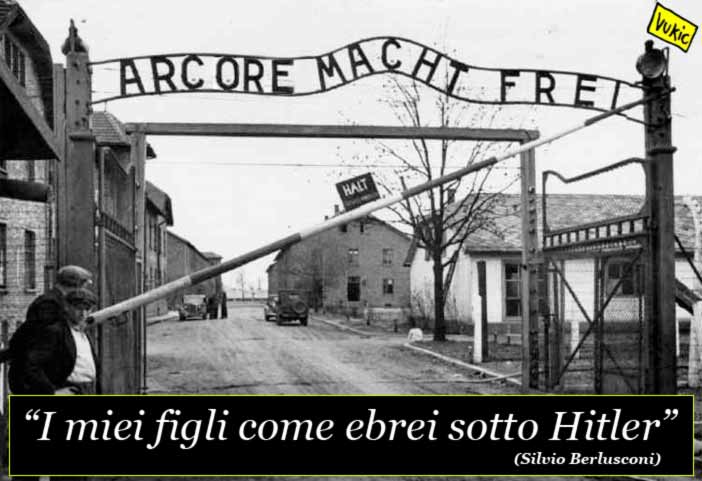 I Tg Rai di ieri sera aprono con Bruno Vespa, ovvero con l’ennesima anticipazione, dal suo ulteriore libro, della ennesima conversazione con il Cavaliere. Quelli Mediaset non possono non citare anche nei titoli la polemica odierna che ha accompagnato le “sobrie “ parole di Berlusconi e le sue angosce confessate al Vespa nazionale; ovviamente a Cologno Monzese non si infierisce, ed il paragone tra la condizione attuale dei suoi figli e quella delle famiglie degli ebrei perseguitate dal nazismo scivola via, come acqua sulla pietra. Non è così per il Tg3 che, per voce del conduttore, definisce “giuste” le reazioni degli ambienti israelitici e, per la politica, del Pd. Le puntualizzazioni giunte intorno alle 19 con le quali Berlusconi rammenta la sua vicinanza ad Israele e la sua condanna della Shoah, provocano un commento in conduzione di Enrico Mentana: cosa c’entra la replica con l’avvicinamento della condizione dei suoi figli alle vittime dell’olocausto?…