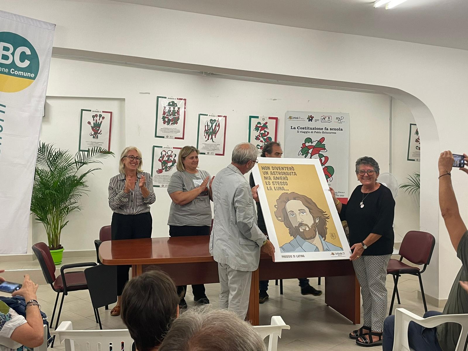Un luogo di impegno civile, per i diritti umani, per la Costituzione in una città che ha ancora molto da dire e molto da fare. Nasce così il presidio di Articolo 21 a Latina, dopo cinque anni di iniziative che l’associazione ha messo in campo insieme alle scuole e al Comune. La portavoce del presidio sarà Patrizia Migliozzi, da tempo impegnata nella difesa dei diritti umani e nella campagna per ottenere verità e giustizia per Giulio Regeni, mentre come presidente è stato scelto Fabio D’Achille, ideatore di molte iniziative culturali con l’associazione Mad, promotore di mostre e incontri sui diritti umani. Il presidio di Latina è stato presentato nel corso di un incontro al quale hanno preso parte, tra gli altri, i genitori di Mario Paciolla, Giuseppe e Anna Motta, e la sorella del cooperante dell’Onu morto tre anni fa in Colombia in circostanze ancora non chiarite, tra silenzi e depistaggi. La madre di Mario ha sottolineato l’importanza di continuare a seguire i canali social che si occupano di avere giustizia per Mario. Il presidio di Latina ha donato alla famiglia Paciolla un’immagine di Mario realizzata dall’artista Fabrizio Gargano. Un incontro molto partecipato nel corso del quale la responsabile per la legalità di Articolo 21, Graziella Di Mambro, ha illustrato quali saranno le prossime iniziative e ricordato lo spirito dell’associazione, che si muove nell’ambito della tutela della libertà di espressione e contro tutti i tentativi di bavaglio, sempre nel solco della Costituzione antifascista. A margine dell’incontro è stata consegnata la tessera onoraria di Articolo 21 al giornalista Lidano Grassucci che nei giorni scorsi ha denunciato di essere stato escluso dalla Rassegna stampa quotidiana del Comune di Latina per via dei suoi recenti articoli critici verso l’attuale amministrazione. Tra le iniziative annunciate a breve termine c’è la realizzazione di una panchina dedicata a Giulio Regeni nell’ambito del progetto “Tracce di libertà di espressione”.