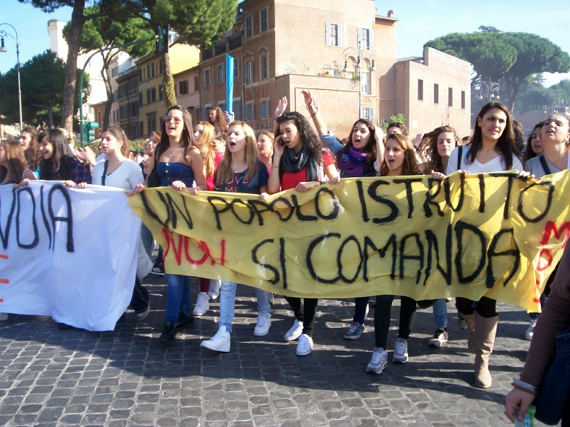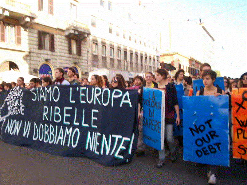Per la scuola pubblico, per un’altra Europa, contro l’austerità. Oggi, rispondendo all’appello lanciato dalla Confederzaine dei sindacati europei, in migliaia, studenti medi e universitari in particolar modo, ma anche lavoratori iscritti alla Cgil sono scesi in piazza per contestare i diktat europei e le politiche di austerità che stanno strangolando intere classi sociali e depauprando il welfare state. A Roma il corteo degli universitari si è congiunto cone quello degli studenti medi invadendo la città. Moltisimi striscioni contro l’attuale Governo dei “banchieri” e l’invito espplicito a “riprendersi il futuro”.