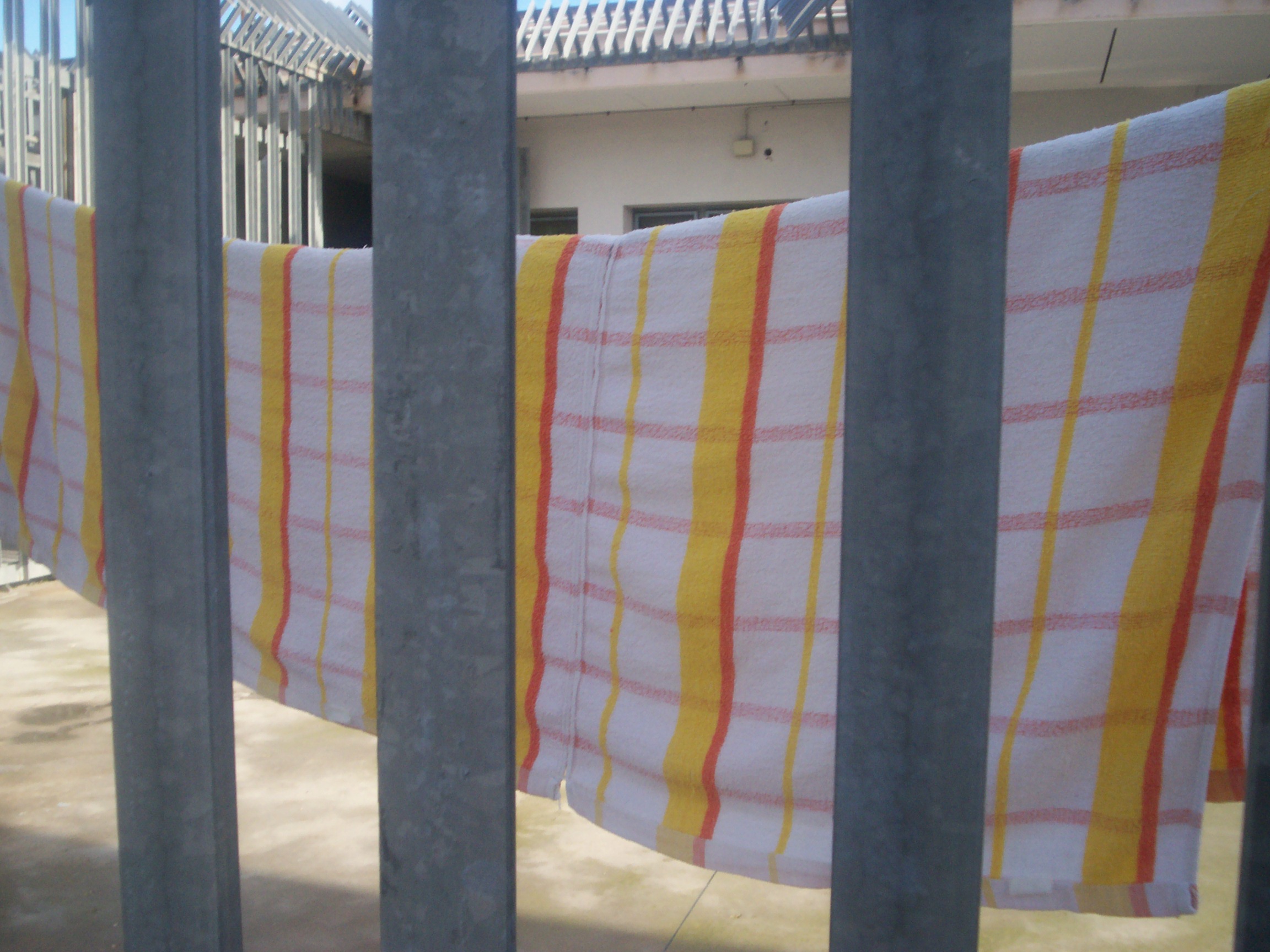 Tra le sbarre campeggiano infatti cordoncini fatti con lenzuola di carta intrecciate che servono da stendibiancheria per le poche cose da lavare e mettere ad asciugare all’aperto nelle giornate di sole.