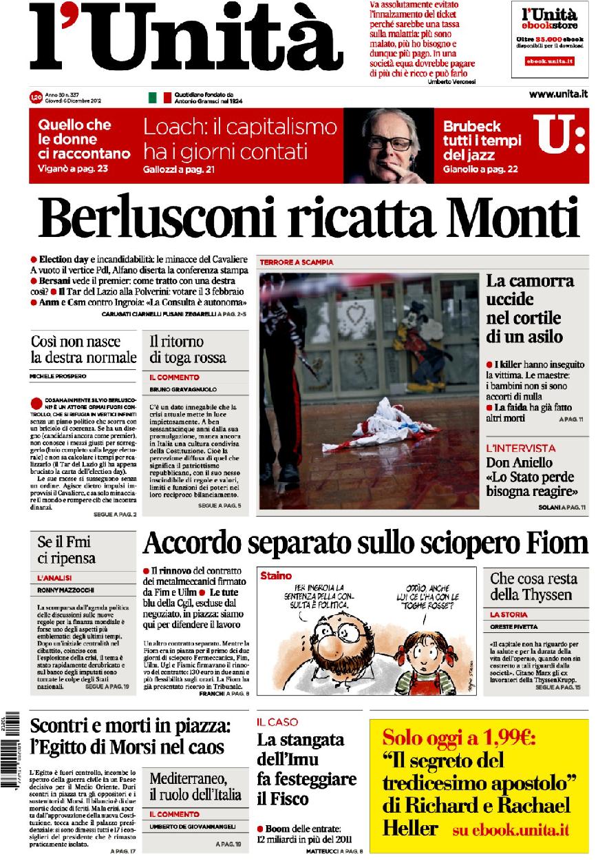 “La redazione de ‘L’Unità’ è oggi in sciopero. I giornalisti sono arrivati a tale decisione a fronte della notevole confusione che in questi mesi ha caratterizzato la gestione del quotidiano colpendone l’immagine proprio nell’anno nel quale si celebra il 90° anniversario della nascita del giornale. Il cdr e l’assemblea chiedono, di fatto, una svolta nella gestione aziendale e chiarezza negli assetti societari, affinché sia possibile un vero rilancio del giornale. L’azienda risponda positivamente alle istanze dei giornalisti ponendo fine ad un conflitto che colpisce pesantemente il patrimonio storico de L’Unità, a difesa del quale si è schierata la redazione”. Lo scrive in una nota Giovanni Rossi, presidente della Federazione Nazionale della Stampa Italiana.