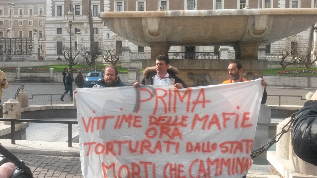 Dopo la puntata speciale andata in onda il 20 gennaio a “Presa diretta”, su Rai Tre, il dramma quotidiano che i testimoni di giustizia sono costretti a vivere sta finalmente ottenendo altri microfoni, telecamere, taccuini. Avrebbero bisogno anche di una scorta mediatica queste persone. In piazza c’erano gli uomini della scorta: li osservavano incatenarsi, li osservavano srotolare un grande striscione: “Prima vittime delle mafie, ora torturati dallo Stato. Morti che camminano”. La storia di Gianfranco Franciosi diventerà un libro, lo scriverà a quattro mani con Federico Ruffo, giornalista di “Presa diretta” che ha portato per la prima volta la sua storia in tv. Ci è voluto tempo, parecchio tempo, perché Franciosi non voleva farsi vedere. Voleva tutelarsi, tutelare la sua famiglia. Ma la disperazione è troppa.