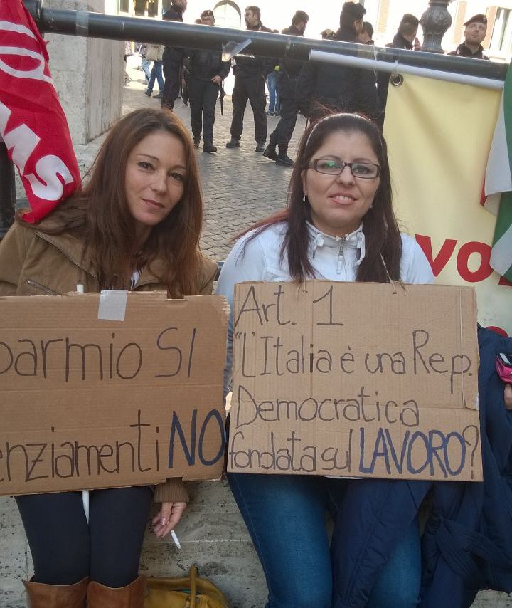“Eppure siamo operai che svolgono lavori di assistenza, sicurezza e pulizie per soli 1000 e ribadiamo mille euro al mese e che saremmo felici di continuare a prendere. Se si parla dei Palazzi Marini si parla di affitti d’oro ed oggi con i tagli della politica gli unici veri tagli sono stati fatti su di noi! In questa settimana abbiamo indetto lo stato di agitazione, siamo stati davanti Montecitorio, in piazza delle 5 lune e il 6 novembre siamo tornati a piazza Montecitorio dalle 9 alle 13. Con la speranza che questa volta qualcuno voglia ascoltarci”.