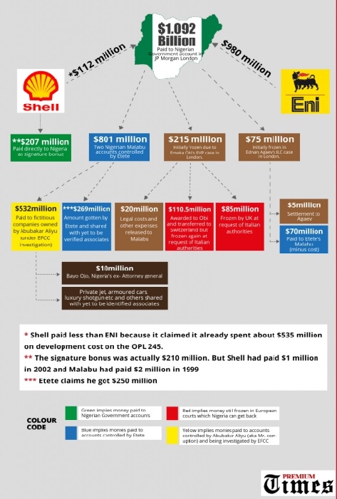 Inoltre, come hanno scritto Dagospia e L’Espresso (mentre gli altri media si occupavano di “sociologia della comunicazione via Twitter” facendo diventare il medium, ahinoi, il messaggio) il 15 dicembre a Londra il Tribunale ha confermato il sequestro di 85 milioni di dollari, chiesto dalla procura di Milano. E altri 110 milioni di dollari erano già stati congelati in un conto svizzero. Sono parte del miliardo di dollari pagato dai giganti Shell e Eni al governo nigeriano e depositato su un conto della JP Morgan di Londra. Peccato che questi soldi (una grossa fetta, 800 milioni) siano finiti alla Malabu Oil and Gas, controllata dalla controversa figura di Daniel Etete, ex ministro del petrolio nigeriano già condannato in Francia per riciclaggio. L’affare riguarda l’acquisto della licenza OPL245 (una concessione petrolifera nei fondali marini a largo della Nigeria che era appunto stata ceduta alla Malabu).