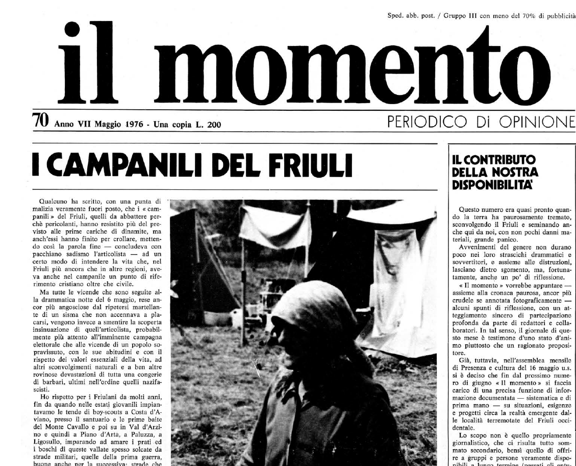 Alle ore 21 di un insolitamente afoso 6 maggio 1976, un violento terremoto di magnitudo 6.4 scala Richter, con un movimento tellurico durato ben 50 secondi, devastò il Friuli. L’epicentro a nord di Udine. Altre scosse seguirono poi fino a metà del mese di settembre. Alla fine si contarono 989 vittime, 18mila case distrutte, 100 mila sfollati. Due le province colpite: in primo luogo Udine e poi Pordenone nella sua parte orientale, pedemontana, collocata alla destra del fiume Tagliamento. Quello che vi riproponiamo qui è il reportage realizzato in queste zone l’8 maggio 1976 da Roberto Reale all’epoca dei fatti collaboratore freelance del periodico pordenonese “Il Momento”