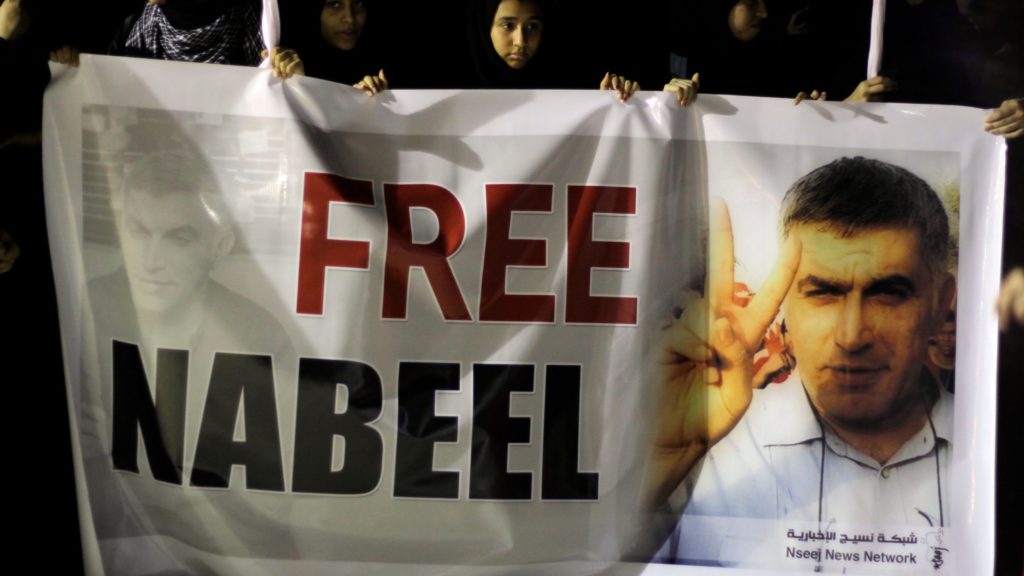Rajab è nel mirino degli al-Khalifa, la famiglia reale sostenuta, armata e protetta dai governi di Washington e Londra, sin dal 2012. Questi i suoi precedenti: due anni di carcere tra il 2012 e il 2014 per aver promosso e preso parte a manifestazioni pacifiche ma non autorizzate e aver in quel modo arrecato “disturbo all’ordine pubblico”; divieto di espatrio emesso nei suoi confronti nel novembre 2014 e tuttora in vigore; sei mesi di carcere nel 2015, poi ridotti a due per motivi di salute, per aver diffuso “un messaggio che potrebbe istigare l’opinione pubblica e mettere in pericolo la pace”.