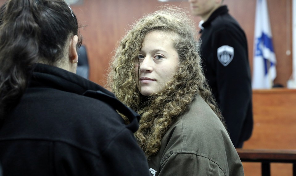 “Laggiù, nella dimenticata terra di Palestina, a Nabi Saleh, piccolo villaggio della Cis-giordania, una giovanissima donna, appena adolescente, sta assurgendo a simbolo della Resistenza strenua del suo popolo, che a 100 anni dalla Nakba è sottoposto tuttora, ma non rassegnato, ad una cinquantennale pesante occupazione straniera. Forte soltanto della disperazione per le angherie e le violenze subite dai suoi stessi familiari ad opera delle forze di occupazione, Ahed Tamimi, a soli 16 anni, ha trovato il coraggio di rivendicare il proprio diritto alla liberta e a non consentire intrusioni nella sua casa: a mani nude si è opposta con qualche schiaffo all’ingresso abusivo di un militare israeliano armato di fucile ed al riparo di un giubotto antiproiettile e di elmetto.