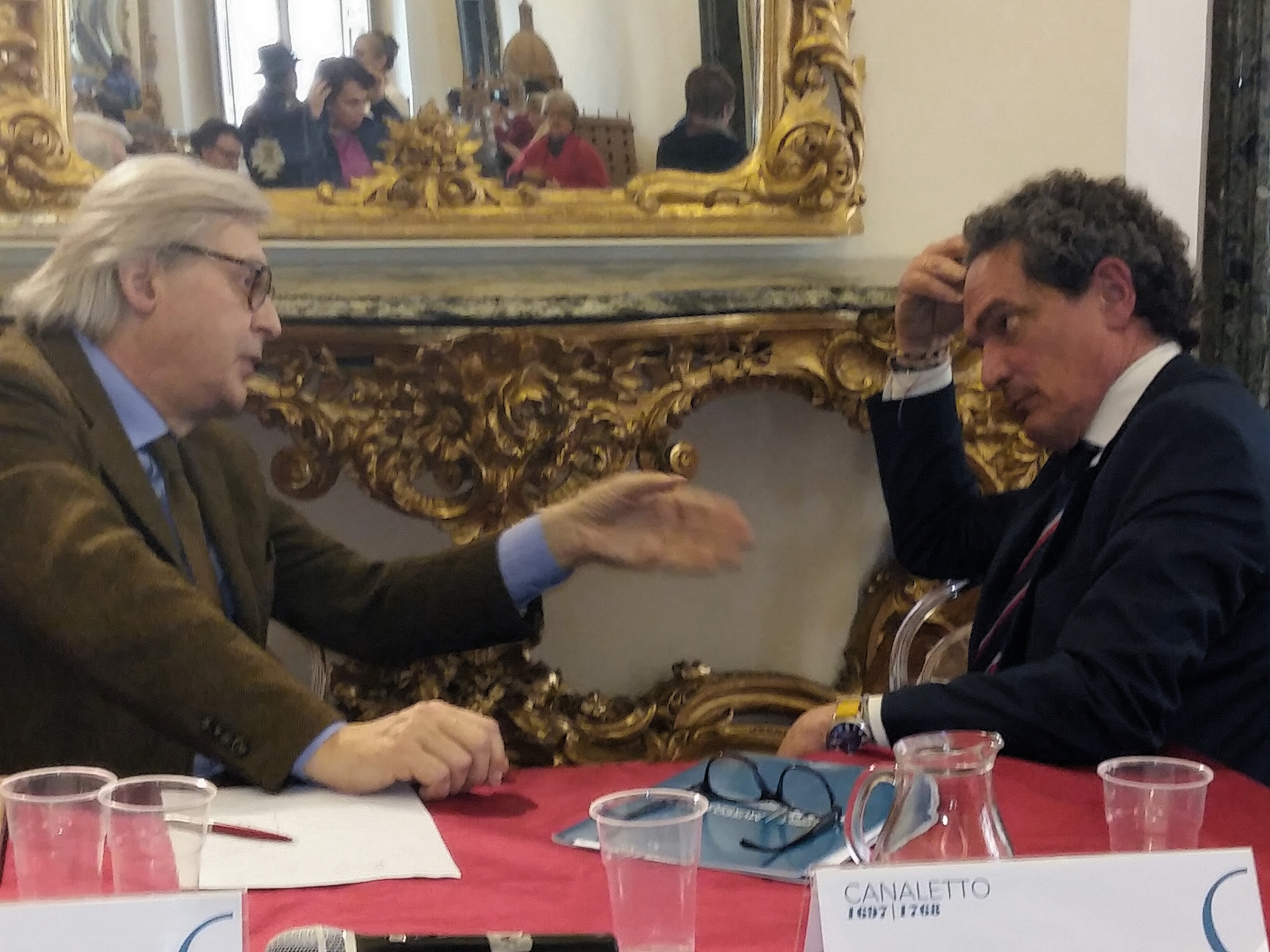 “Canaletto 1697 – 1768”, la mostra-evento presentata a Roma davanti a una platea stampa così folta da vedere molti posti in piedi e, tra i numerosi ospiti e personalità della cultura, anche il critico d’arte e politico italiano, Vittorio Sgarbi a lungo intrattenersi con il suo omologo Pietro Folena, organizzatore di manifestazioni d’arte e di questa stessa, scrittore, editore ed ex parlamentare. L’esposizione intende celebrare il 250° anniversario della morte del pittore veneziano con il più grande numero di creazioni mai arrivate in Italia, sessantotto tra dipinti e disegni e documenti, di cui alcuni celeberrimi.