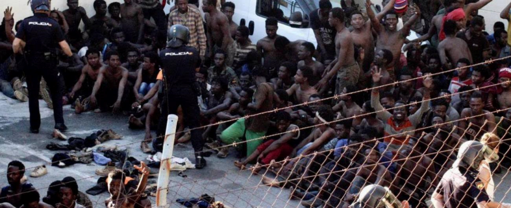 Migranti dell’enclave spagnola di Ceuta: sono ragazzi che provengono da nazioni come l’Eritrea, la Somalia o il Gambia, dove sono in corso gravissimi conflitti. Vi sono giovani che fuggono per non essere massacrati dagli integralisti jihadisti, altri che hanno già subito detenzioni arbitrarie e torture, altri ancora sottoposti ad arruolamento forzato in milizie in cui l’essere umano diventa carne da macello. È per questo che fuggono e sono terrorizzati all’idea del rimpatrio. Alcuni si sono difesi con calce e pezzi di cemento dal tentativo di deportazione, altri hanno impugnato pali recuperati dalla recinzione. Disperazione, non aggressione. Estrema ribellione al tentativo da parte delle autorità di riportarli alle torture, ai pestaggi, alle bande armate, spesso alla morte. Di fronte alle scene di repressione e di rivolta (una rivolta che possiamo stigmatizzare, ma che è in ogni caso riconosciuta come legittima dalla Dichiarazione Universale dei Diritti Umani, come disperato ultimo mezzo di sopravvivenza), lo stesso primo ministro spagnolo Pedro Sánchez ha riconosciuto che la barriera alta sette metri e munita di filo spinato costituisce una violazione del diritto dei perseguitati a cercare rifugio in un altro paese e ha deciso di rimuoverla.