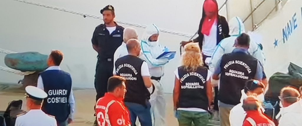 Vivono da giorni sul ponte di una nave, un ponte di volo per l’atterraggio degli elicotteri. Tutti insieme uno vicino all’altro con i loro letti di cartone e coperte militari e termiche: lo spazio dove dormono, mangiano, parlano, pregano, vengono medicati, ma soprattutto aspettano. «Perché non possiamo scendere? Perché non possiamo ricominciare la nostra vita?». È quello che chiedono mentre guardano le transenne sulla banchina del porto ai piedi della scaletta della nave e gli uomini della Polizia che stazionano lì accanto.