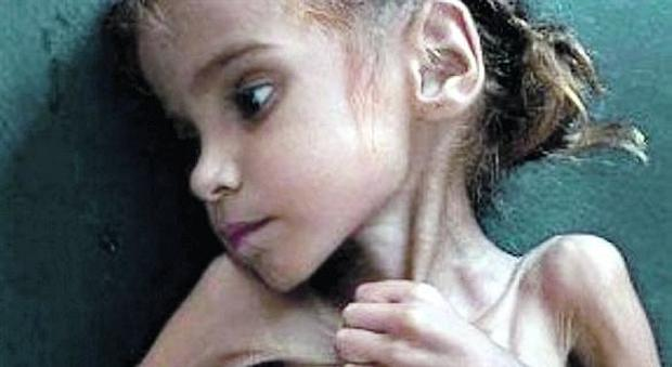 Guardate bene questa foto. Questa bambina si chiamava Amal, aveva 7 anni, è morta di fame e stenti, sotto le bombe dei vostri governi.