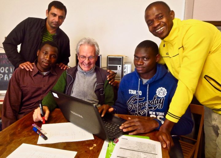 Nell’aprile 2017 in paese si sparse la voce che sarebbe arrivato un insediamento di migranti. Il paese è Poggio alla Croce, ridente località a cavallo dei monti che separano il Chianti dal Valdarno, 190 abitanti, una storia pluridecennale di pacifica convivenza e svariate proficue collaborazioni di interesse pubblico. Dopo pochi giorni dalla notizia erano già state raccolte 230 firme “contro”. La reazione fu violenta, punteggiata da alcune infuocate assemblee popolari che vide la partecipazione delle due amministrazioni comunali interessate, i dirigenti dei potenziali soggetti gestori, funzionari della prefettura, forze dell’ordine, esponenti (non invitati) di partiti in cerca di facili strumentalizzazioni. Un manipolo di cittadini (10-15) intraprese invece un percorso di autoformazione, non in opposizione alla reazione di pancia ma per cercare di capirci qualcosa. Nell’agosto 2017 arrivarono 30 migranti di vari paesi, inizialmente da Senegal, Mali, Ghana, Bangladesh, Pakistan. Di tutte le fosche previsione paventate nei mesi precedenti non si avverò nulla. Invece partì quasi subito una scuolina dove i migranti che lo volessero, ma anche altri nostri cittadini, potevano ricevere supporto su questioni di italiano, informatica, pratiche burocratiche e altro. Da allora, agosto 2017 ad oggi, ogni martedì e ogni giovedì si fa scuola dalle 17 alle 19. Non è mai saltato un pomeriggio, senza nessun bisogno di pianificazione. I cittadini che partecipano non sono solo di Poggio alla Croce ma vengono anche da altre zone circostanti. La scuola non lavora su programmi e contenuti preconfezionati ma sui bisogni degli individui, un po’ come succedeva a Barbiana. Può accadere anche di recuperare e ricondizionare vecchi computer destinati alla rottamazione per distribuirli a chi ne ha bisogno; ne abbiamo recuperati 22 per ora (accettiamo computer da chiunque…).