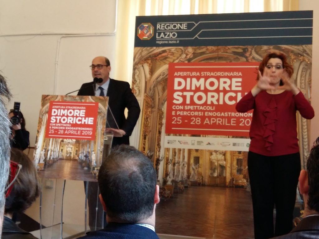 In uno dei saloni della casa di Riposo Santa Francesca Romana, Nicola Zingaretti, alla presenza di Lorenza Bonaccorsi assessore regionale al Turismo e Pari Opportunità, spiega il senso e il valore del progetto. Dice Zingaretti: “L’apertura delle Dimore storiche è un’iniziativa importantissima per il Lazio. La Regione ha infatti la volontà di ricostruire un modello di sviluppo del territorio che faccia della bellezza e anche del buon cibo e del buon vino uno dei pilastri di benessere, crescita e lavoro. Da alcuni anni stiamo mettendo al centro delle politiche culturali della Regione anche il paesaggio, come valore del patrimonio. Non esiste angolo del pianeta, come il Lazio, con la stessa concentrazione di beni, non c’è solo Roma, ma anche tutte le bellissime province che fanno parte della regione. La legge sulle Dimore storiche non è rimasta nel cassetto – ha concluso Zingaretti – ma sarà rifinanziata in bilancio, e crediamo che sarà utile tanto ai Comuni, quanto ai proprietari. Il Lazio è sempre più la regione dell’eterna scoperta”.