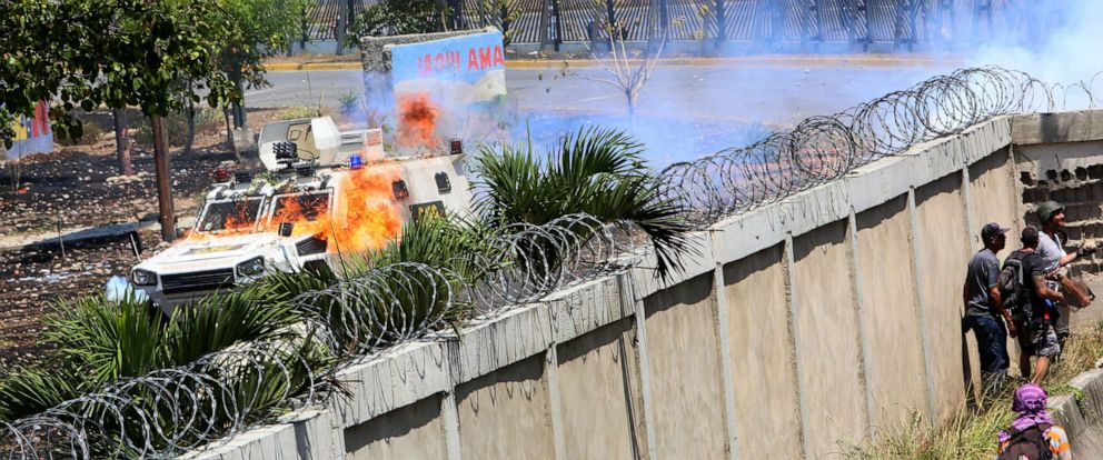 Il fuoco insurrezionale sarebbe dunque destinato a perdurare acceso, anche se le fiamme finora non divampano. E il rischio d’un incendio sociale appare fortissimo e concreto. La strategica base militare de La Carlotta, nei pressi della capitale, è almeno in parte insorta. C’è da immaginare che non casualmente le sue adiacenze siano state un punto di concentrazione per i manifestanti dell’opposizione. Contro i quali sono intervenute a più riprese con bombe lacrimogene e violenti getti d’acqua autoblindo della Guardia Naciónal. “Occupiamo la piazza fino a sbaragliare l’Usurpazione”, incitavano da altri punti della città Juan Guaidó e il capo storico del suo raggruppamento d’estrema destra, Leopoldo Lopèz, che per unirsi ai rivoltosi ha abbandonato gli arresti domiciliari ai quali è stato confinato da una condanna a 14 anni.