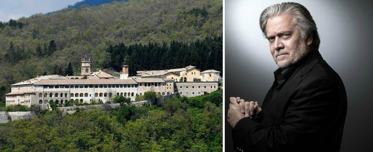 Inoltre, coincidenza curiosa, proprio ieri mattina il Mibac ha reso noto di aver avviato l’iter per revocare la concessione dell’abbazia all’associazione di Bannon e Harnwell. La decisione è arrivata dopo il parere dell’Avvocatura di Stato che ha ravvisato irregolarità nell’aggiudicazione del bando, come dimostrato nell’inchiesta di Report. L’ispezione era partita dopo il ricorso in autotutela presentato da un comitato di cittadini che fin dall’insediamento della Dignitatis Humanae ha protestato contro l’assegnazione del bene di proprietà dello Stato all’associazione di Bannon per 19 anni.