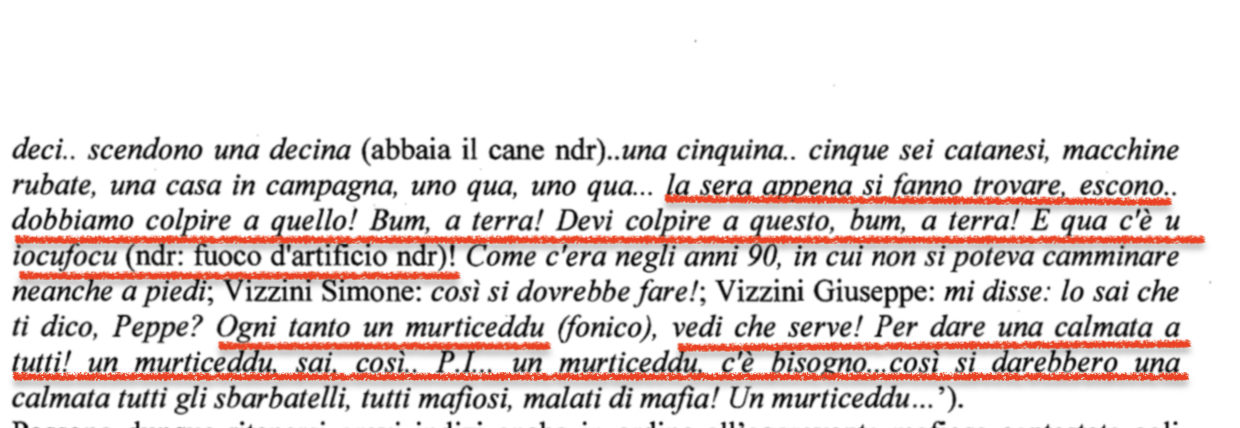 “VIZZINI Giuseppe commentava con i figli le parole di Salvatore Giuliano il quale, forte dei suoi legami con i Cappello di Catania, per eliminare lo scomodo giornalista stava per organizzare un’eclatante azione omicidiaria”.