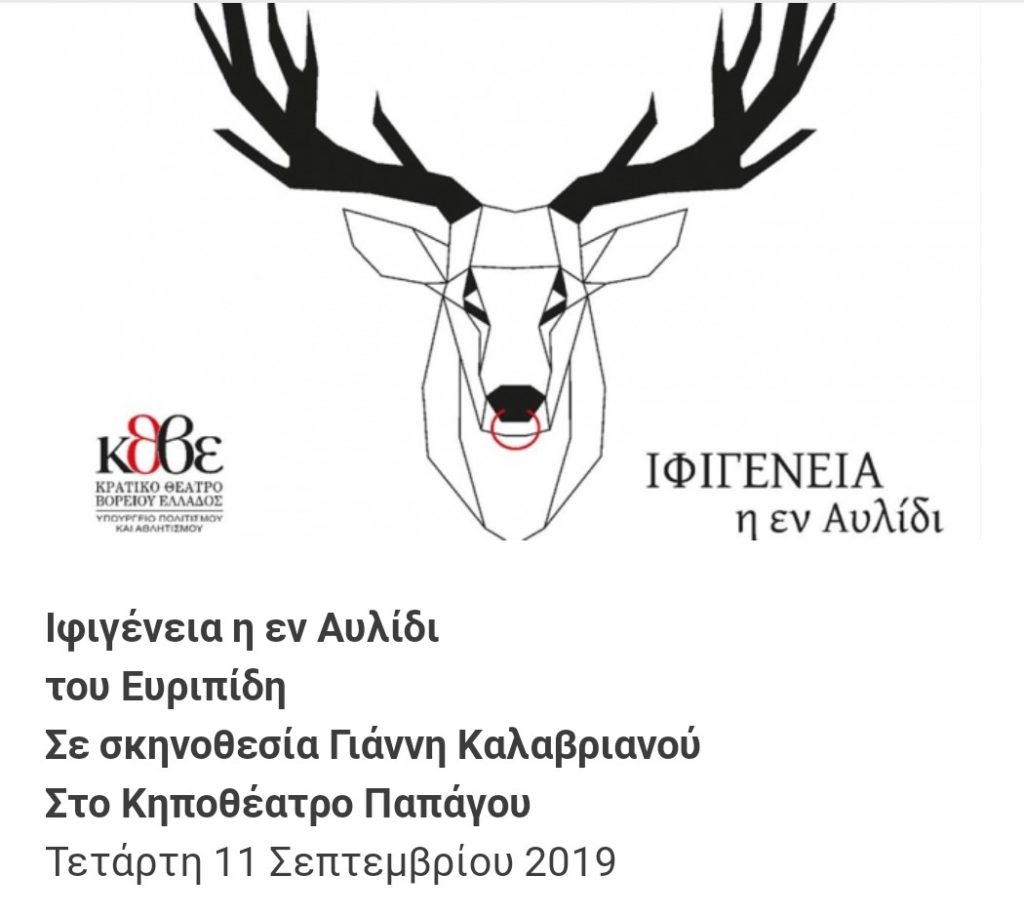 Uomo-cerva, un’inquietante entità tra il bestiale e il divino (il torso muscoloso virile è sormontato da un cervide blu, rievocazione della Cerva Sacra del mito) regge le sorti di un esercito in fase di stallo, bloccato nel porto senza vento dalla mano di Artemide irata: si tratta dell’unica audacia registica in una rappresentazione che trova nella linea pulita del dettato (nella nuova traduzione in greco moderno di Pandelis Bukalas) e nell’aderenza al testo originale euripideo il suo maggiore punto di forza. La produzione del Teatro Nazionale della Grecia del Nord per la regia di Yannis Calabrianos e che ha già compiuto un ampio tour estivo con tappe significative in tutta la Grecia – dal festival di Epidauro fino a Cipro – approda ora nel contesto parchistico del Teatro Giardino di Papagu alla periferia di Atene.