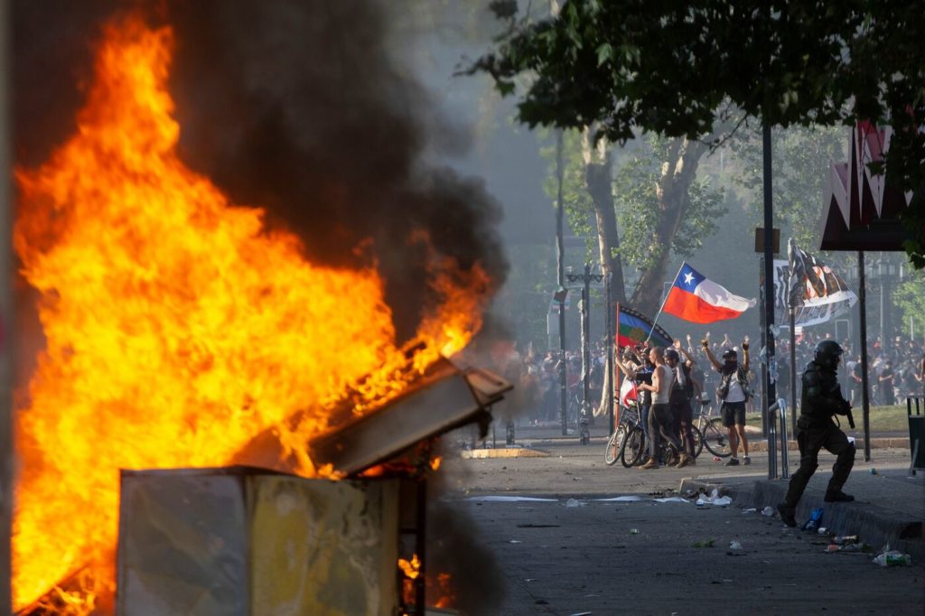 Ho rievocato queste vicende di fronte all’emozione che mi ha suscitato la drammatica crisi in cui è precipitato di nuovo il Cile: di nuovo, come nel 1973, i blindati dell’esercito sono scesi in strada; di nuovo un Presidente che assomiglia a Pinochet in sedicesimo ha decretato lo stato di emergenza e imposto il coprifuoco; di nuovo i Carabineros hanno fatto ricorso a forme estreme di violenza nei confronti dei giovani che protestavano provocando, allo stato, 18 morti. La protesta è iniziata la scorsa settimana su iniziativa degli studenti delle scuole superiori che hanno invaso la metropolitana, saltando i tornelli per contestare il rincaro dei biglietti. Ma evidentemente è stata solo la miccia che ha fatto denotare una rabbia sociale che covava da molto tempo, che è esplosa in forme vandaliche con l’incendio delle stazioni della metro ed il saccheggio dei supermercati.