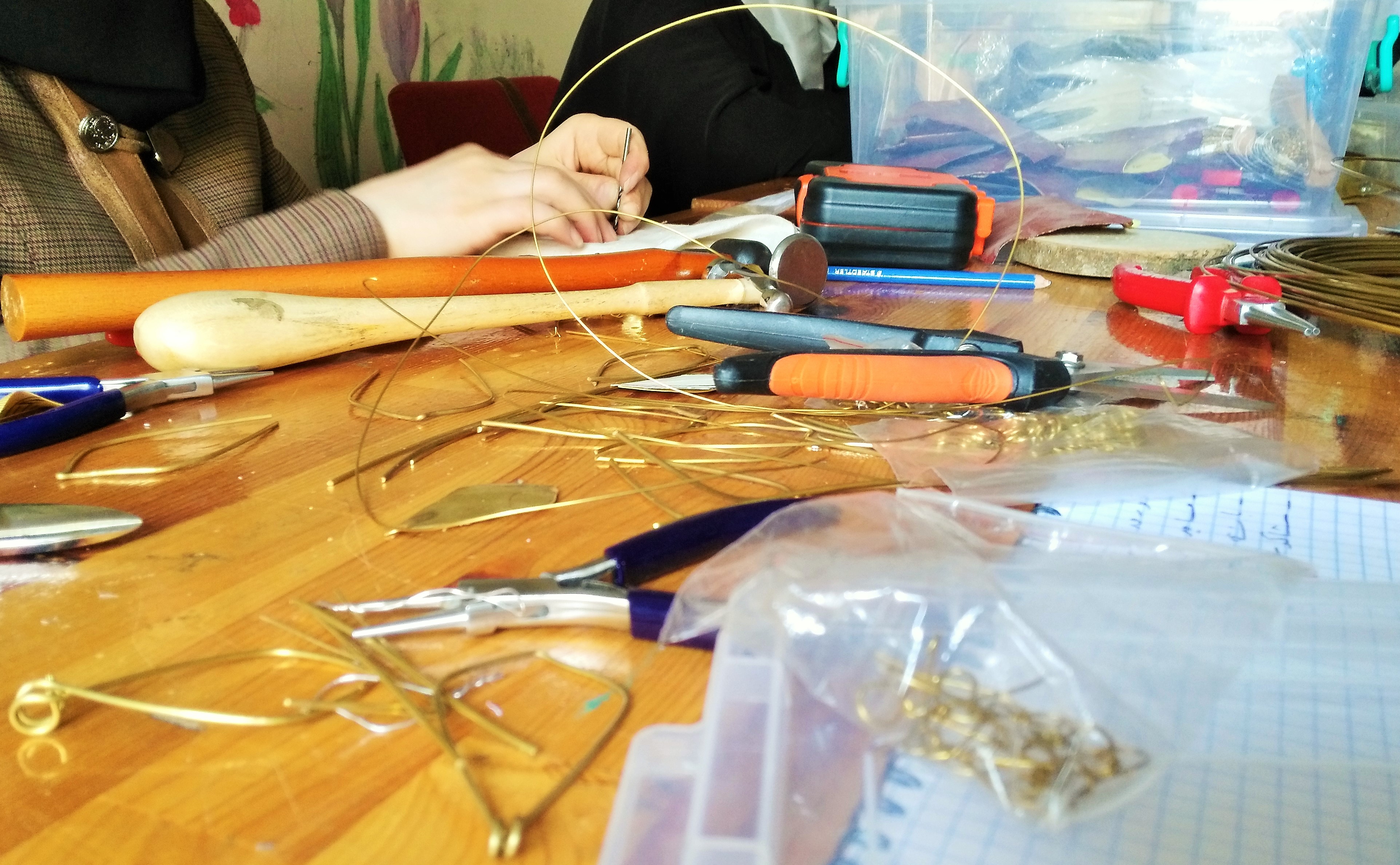 Il community center nato del 2015 proprio per dedicarsi alla cura e all’intrattenimento dei bambini attraverso attività sportive e laboratori artistici è un punto di riferimento non solo per il quartiere, ma per tutta la città. Sono qui per conoscere più da vicino un suo “affluente”, Muhra, nato nel 2017 con l’intento di coinvolgere le mamme di quei bimbi nelle attività del centro con uno scopo ben preciso: la creazione di oggetti d’artigianato. I primi sono degli orecchini, gli ormai celeberrimi “Drop earrings not bombs” realizzati semplicemente in acciaio e cotone colorato, riproducendo la forma di una goccia che ricorda una mina antiuomo.