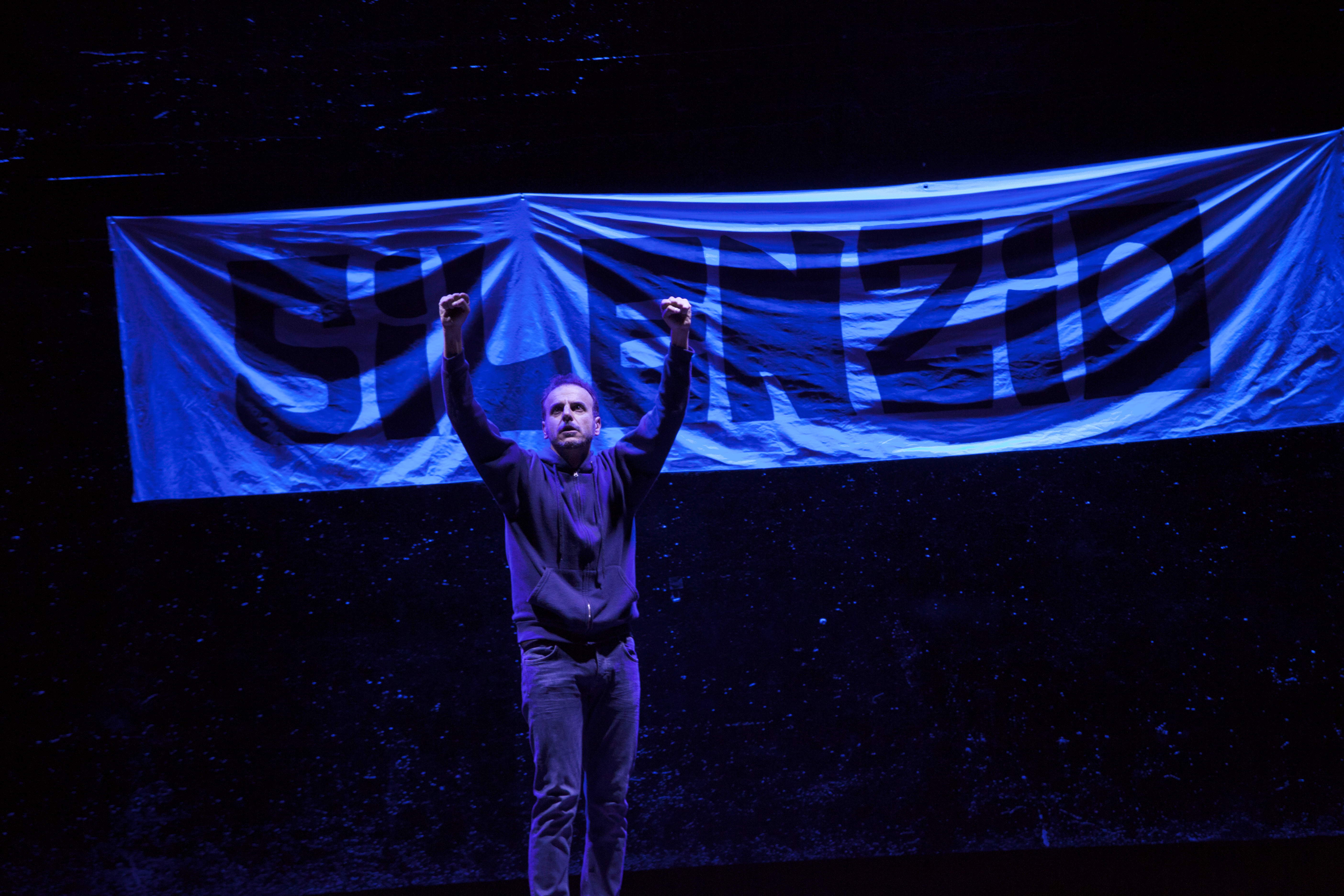 Inconsciamente attribuiamo all’atleta una forza fuori del comune e restiamo esterrefatti se la vita ci fa toccare con mano il suo “tallone d’Achille”, la sotterranea, silenziosa, fragilità che può tagliare le gambe a chiunque. Spesso sono proprio questi due aspetti contrastanti che avvicinano a noi un personaggio pubblico e ne fanno un mito. Ed è davvero difficile scrivere e rendere autentica la tensione di un conflitto psichico così complesso senza cadere nella retorica dei luoghi comuni, ma ci riesce Ariele Vincenti che ha scritto, interpretato e diretto “Ago:capitano silenzioso”, monologo che debutta a teatro per la prima volta e si materializza in un one man show con la potenza del dramma, riuscendo a entusiasmare il pubblico fino a sollevare cori e risate.