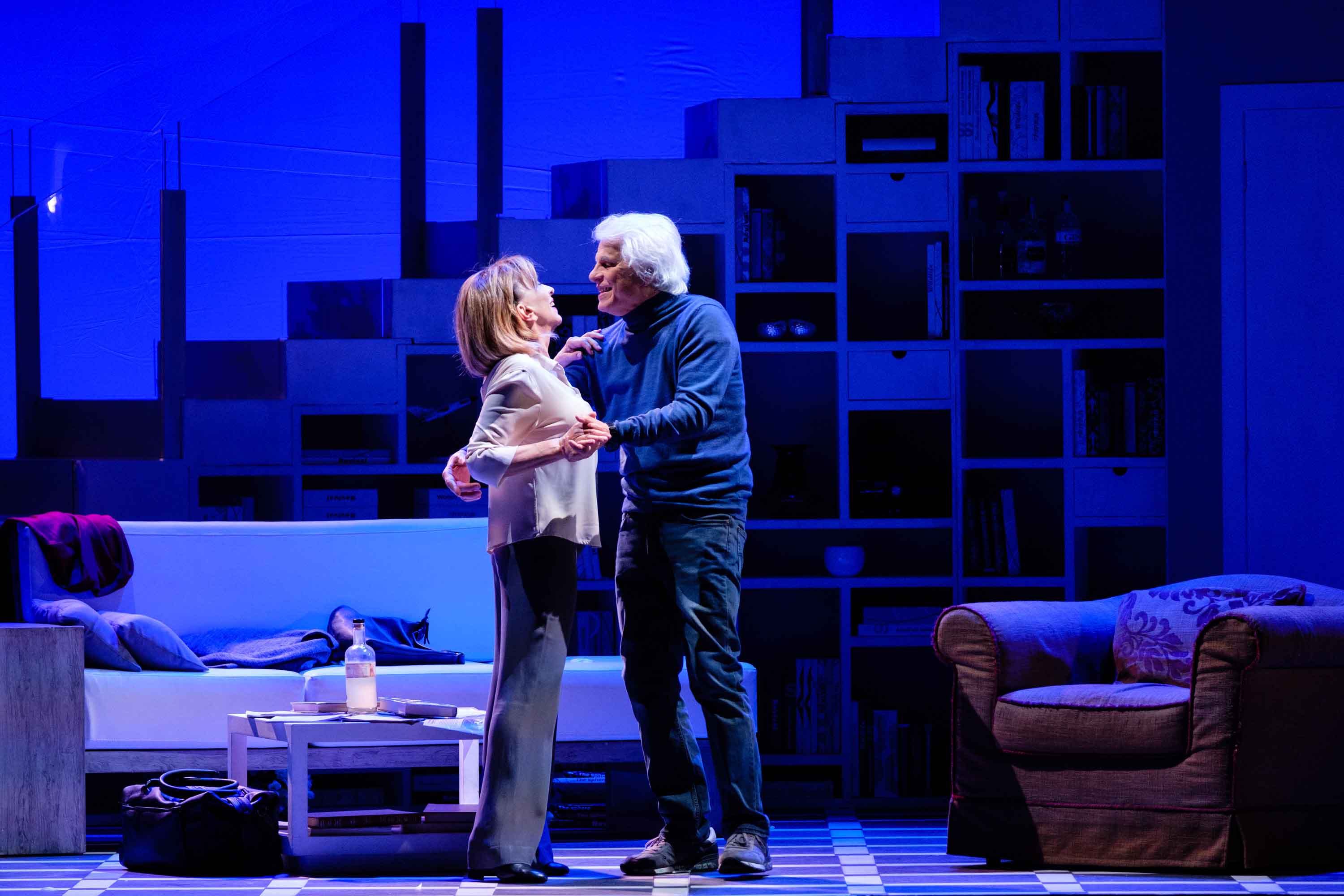 Sul palcoscenico di un teatro Quirino completamente rinnovato, con poltroncine più comode, il sipario si allarga su una scenografia dai sapienti bianco e bluette che danno tono a una casa borghese e intellettuale, dove una coppia di persone mature, Gilles e Lisa (gli acclamati Michele Placido e Anna Bonaiuto) sono appena rientrati: lui, scrittore di gialli, sembra aver perso memoria e identità a causa di un incidente e Lisa, la moglie, tenta di ricostruire il suo passato grazie agli effetti personali dell’uomo, ai suoi mobili, ai ricordi. Gilles ha in testa un grande cerotto ma all’inizio non è chiaro quale sia stata la causa della disgrazia. Con l’avanzare della rappresentazione, attraverso il dialogo tra i due, ricco di colpi di scena e battute ora amorose ora feroci, scopriamo le ragioni misteriose e sorprendenti della perdita della funzione mnemonica di lui …
