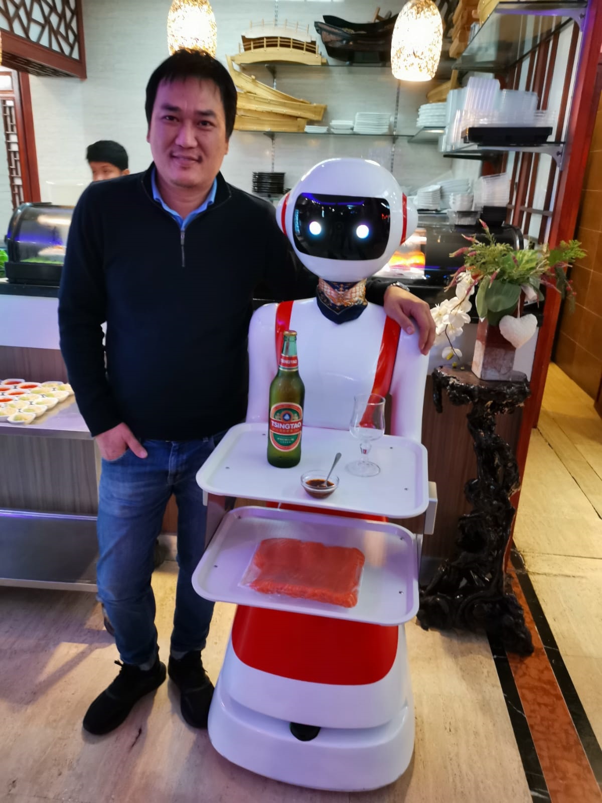 Salvo errore, è il primo robot-cameriere in servizio in un ristorante romano. Altri ne verranno ma questo è, se non il primo in Italia, certamente, un pioniere a Roma Nord. A essere precisi, è una camerierina, si chiama Caterina, come la protagonista elettronica del film di Alberto Sordi del 1980, (anche quello una novità assoluta, quarant’anni fa, nel cinema italiano).