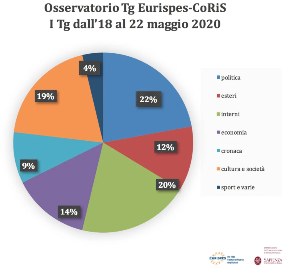 I Tg dal 18 al 22 maggio – Lo scontro politico, con la doppia mozione di sfiducia al Ministro della Giustizia, Alfonso Bonafede, ed i successivi accesi scambi tra maggioranza ed opposizione, dominano tutte le edizioni tra martedì e giovedì. L’atmosfera da presunta “crisi evitata” si riflette nelle diverse interviste ai leader, con Tg2 che interpella, giovedì, Vito Crimi e Tg3 che venerdì si confronta con Giorgia Meloni. Più di altri, Tg La7 entra nel vivo delle mosse dell’esecutivo, titolando, mercoledì, sull’intervista di Conte a Il Foglio …