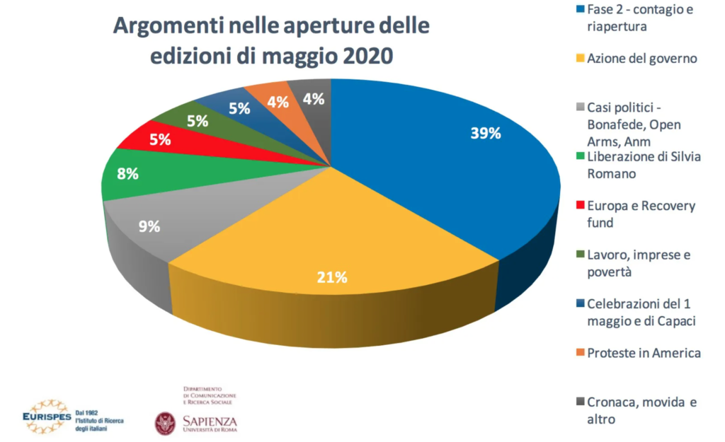 I Tg di maggio 2020 – Finisce l’emergenza e, già dall’inizio della “Fase 2”, la politica si riappropria dei suoi spazi nei Tg del prime time a discapito dei tanti volti della società civile, che nei mesi del lockdown erano divenuti una costante nella narrazione mediatica delle testate …
