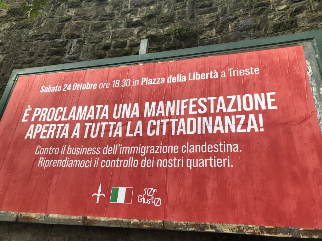 Succede a Trieste dove il gruppo Facebook “Son Giusto”, vicino a formazioni fasciste come Forza Nuova, CasaPound e Veneto Fronte Skinheads e a vecchie glorie dell’estrema destra locale, promuove una manifestazione “aperta a tutta la cittadinanza per riprendersi il controllo dei propri quartieri”; la convocazione è per sabato 24 ottobre in piazza della Libertà, zona stazione, a un passo da dove ogni giorno da tempo i volontari e le volontarie dell’associazione Linea d’Ombra e dell’associazione di medici “Strada Si.Cura”, supplendo a un ruolo che dovrebbe essere delle Istituzioni e a cui non hanno abdicato neanche durante il lockdown, accolgono i migranti provenienti dalla rotta balcanica e offrono conforto, cibo, vestiti, assistenza a persone stremate dalla fatica e dalle violenze subite: persone inermi che non hanno più nulla e a cui si vorrebbe togliere anche la dignità.