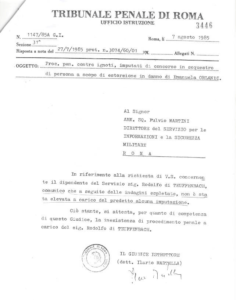 Ma la prova regina che smontò quel castello di fantasie, è la certezza che il 19 agosto 1983 Rudolf di Teuffenbach non era a Terlano bensì a Monaco di Baviera. Lo si apprende dalla documentazione ufficiale agli atti dell’inchiesta Orlandi. Dove c’è copia dei telex che spedì quel giorno dal suo ufficio e dei servizi che effettuò presso la sua banca, per i quali mai avrebbe potuto trovarsi per le 13:15 a Terlano, oltretutto distante trecento chilometri e almeno tre ore e mezzo di viaggio. Anche perché avrebbe necessitato di un’autorizzazione per assentarsi dall’ufficio, che per regolamento non poteva rimanere scoperto e che divideva col collega Antonio Trono, dal 25 luglio al 19 agosto 1983 in ferie nel Salento come risulta dalla nota trasmessa al giudice Martella, il 16 maggio 1985, dal direttore del SISMI, l’ammiraglio Fulvio Martini. E da una successiva corrispondenza fra i due arrivò la definitiva conferma della sua estraneità alla vicenda. “In riferimento alla richiesta di V.S. concernente il dipendente del Servizio sig. Rodolfo di Teuffenbach, comunico che a seguito delle indagini espletate, non è stata elevata a carico del predetto alcuna imputazione. Ciò stante, si attesta […] la inesistenza di procedimento penale a carico del sig. Rodolfo di Teuffenbach” scrisse il giudice il 7 agosto 1985 all’ammiraglio che chiedeva se il funzionario potesse essere nuovamente reimpiegato dopo essere stato posto in aspettativa all’inizio dell’indagine nei suoi confronti.