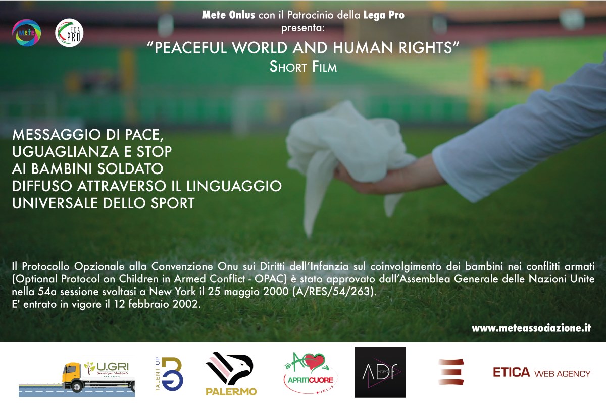 Per ricordare questa giornata l’Associazione Mete Onlus con il Patrocinio della Lega Pro presenta “Peaceful World and Human Rights” un Messaggio di Pace, Uguaglianza e Stop ai Bambini Soldato diffuso attraverso il linguaggio universale dello Sport, tramite un webinar che si terrá nella giornata del 12 febbraio 2021 alle ore 18.00.