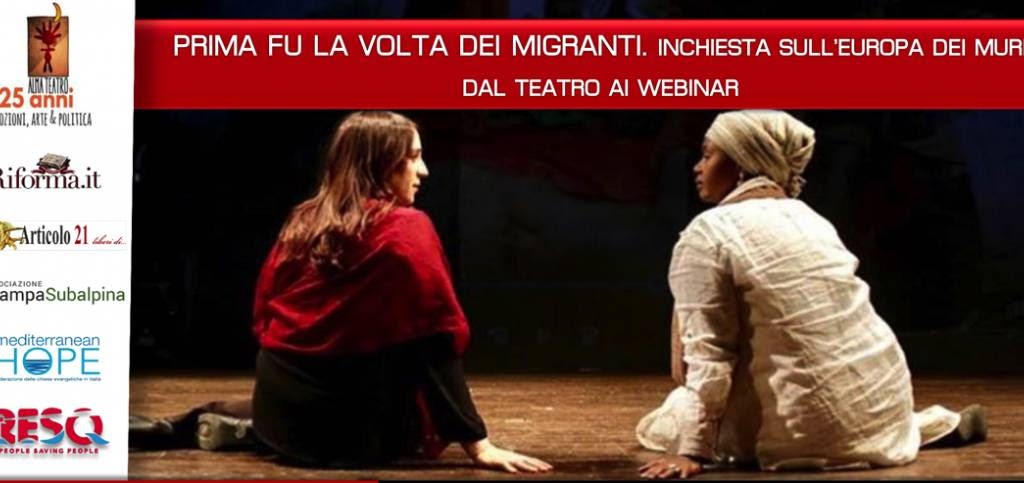 «Prima fu la volta dei migranti» è lo spettacolo inchiesta «sull’Europa dei muri» portato in scena e prodotto da Almateatro, che muove i suoi passi attraverso il linguaggio e la formazione civile per far conoscere le politiche europee in materia di migrazioni e di asilo.
