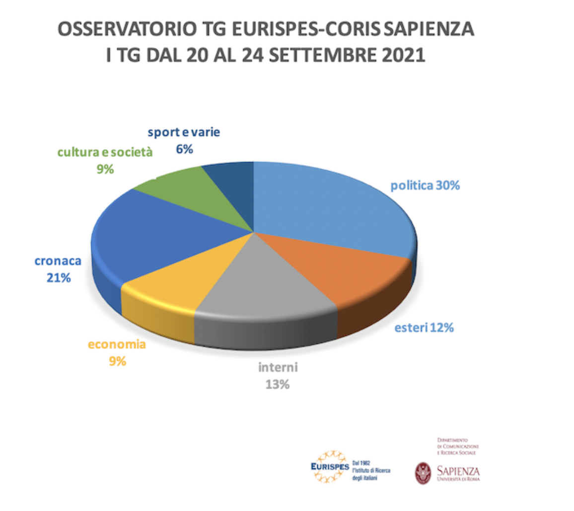 I tg dal 20 al 24 settembre – Aperture diversificate, per la politica, nella prima parte della settimana con attenzione alla fiducia votata sulle riforme relative alla Giustizia e agli sviluppi sul fronte del green pass. I buoni dati economici per il Paese, con previsioni di crescita al 6%, fanno emergere nelle edizioni un clima di fiducia, rafforzato dal vero e proprio trionfo ottenuto dal Premier Draghi all’assemblea di Confindustria, rilanciato da tutte le testate…