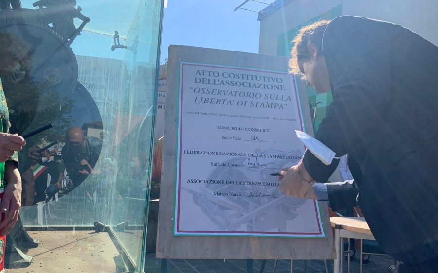 È nato a Conselice l’Osservatorio permanente per la vigilanza e il monitoraggio sulla libertà di stampa, «una iniziativa a cui crediamo moltissimo, lanciata due anni fa in questo contesto dal presidente della Fnsi, Giuseppe Giulietti», ha ricordato la sindaca del Comune nel Ravennate, Paola Pula. Con la prima cittadina, hanno firmato l’atto costitutivo Raffaele Lorusso, segretario generale della Federazione nazionale della Stampa italiana; Matteo Naccari, presidente dell’Associazione Stampa Emilia Romagna e Paolo Berizzi, presidente dell’Osservatorio le cui attività saranno a breve potenziate con la pubblicazione di un sito internet dove raccogliere le segnalazioni sulle minacce ai cronisti.