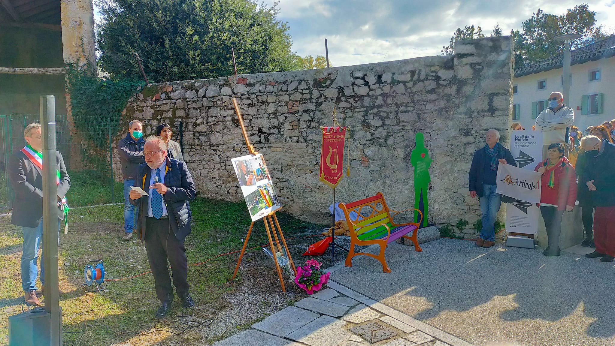 Oggi con questa semplice cerimonia, a cui si aggiunge il programma pomeridiano, la ricordiamo dedicando a lei una panchina, simile a quelle da lei pitturata, con accanto un piccolo totem.