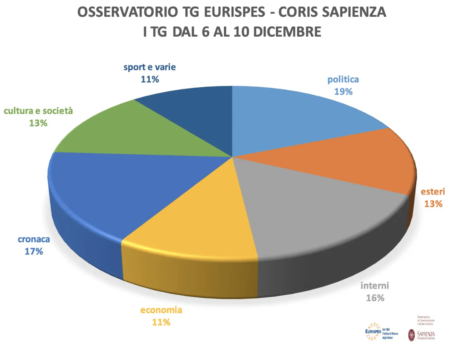 I Tg dal 6 al 10 dicembre – Con l’entrata in vigore del super green pass, che lunedì riceve le aperture di tutte le testate, l’informazione di prime time sembra tirare per qualche giorno un sospiro di sollievo, riprendendo da metà edizione la cronaca del contagio. La tendenza s’inverte venerdì quando, con il nuovo picco tra contagiati (oltre 20mila) e deceduti (più di 100), i numeri del Covid tornano in cima alle scalette. Nonostante i dati allarmati e le regioni che rischiano di “tingersi di giallo”, non trovano posto nei servizi particolari toni d’allarmismo, con Tg5 che, venerdì, ricorda in copertina come l’Italia, a dispetto della crescita dei casi, resti il paese europeo che meglio controlla la quarta ondata…