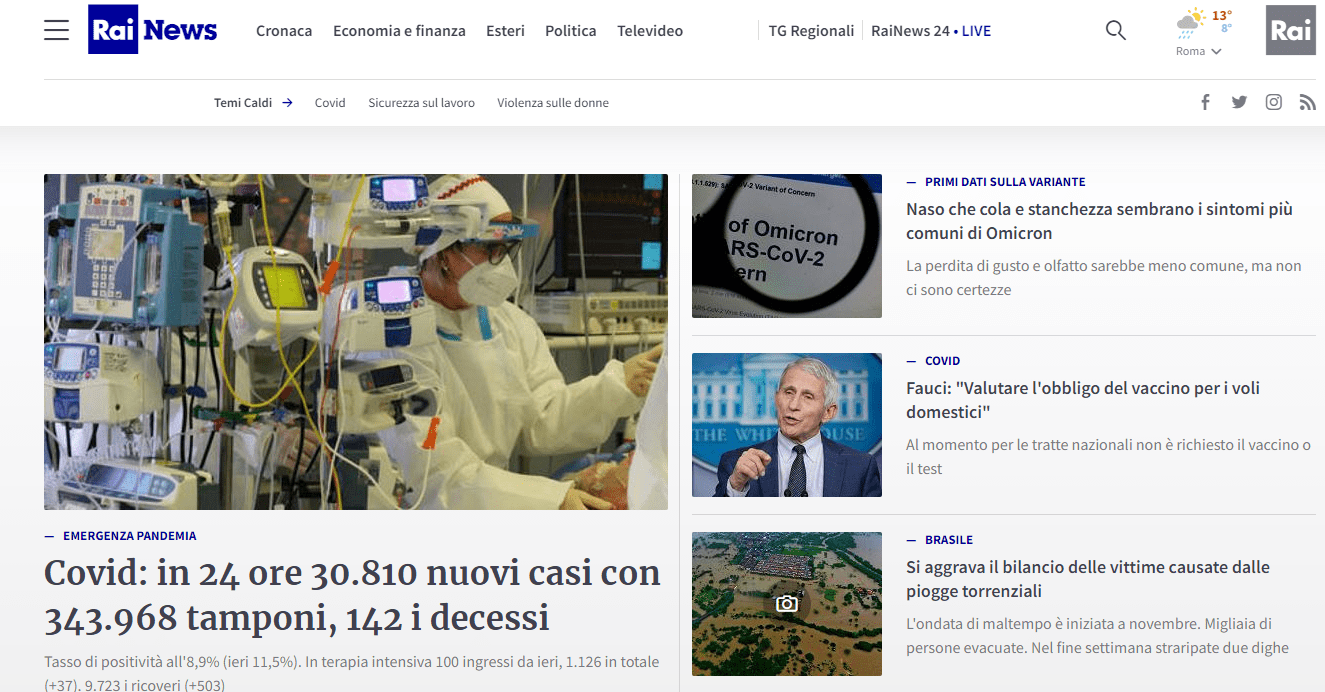 “Salutiamo positivamente la partenza della nuova versione del sito rainews.it che direzione e azienda hanno voluto ad ogni costo che avvenisse prima del 31 dicembre 2021. Da anni l’Usigrai insiste sulla necessità di investire sul portale unico della Rai. Oggi però dobbiamo constatare che, nonostante le intenzioni e gli annunci, siamo di fatto a un restyling del sito. Alcune delle novità annunciate non sono in pagina (storytelling e inchieste), scomparsi gli archivi degli approfondimenti realizzati in passato, poca evidenza all’informazione del Giornale Radio e alla pagina 101 di Televideo, ultim’ora affidata alle notizie dell’Ansa e squadra tecnica e social ancora inattiva. Per non parlare della mancata integrazione con i siti delle redazioni regionali che avrebbero dovuto rafforzare il progetto complessivo e che invece ad oggi ne sono fuori. La Rai non si può permettere un altro fallimento sul web”. Lo scrive l’Usigrai in una nota.