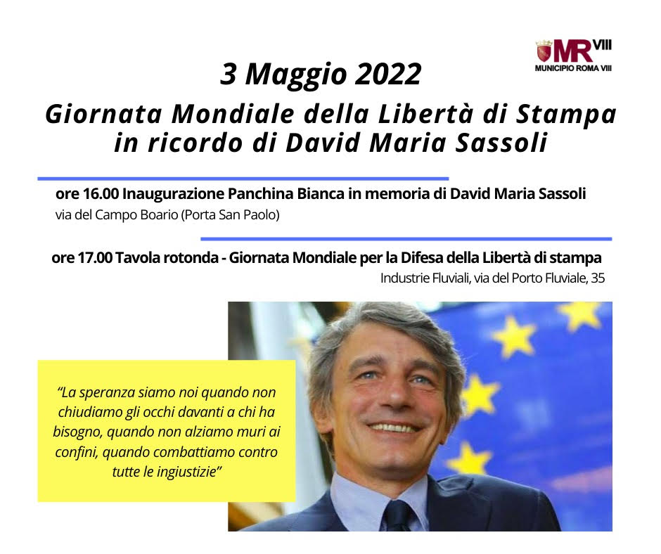 “La Giornata mondiale della libertà di stampa sarà l’occasione per ricordare Sassoli, giornalista, uomo delle istituzioni e convinto difensore dei valori di uguaglianza e libertà, con due appuntamenti nel nostro territorio. Inaugureremo assieme ai suoi familiari una panchina dedicata a David e successivamente faremo una tavolo rotonda, alla presenza delle istituzioni, dei rappresentanti politici e dei giornalisti per riflettere sull’importanza dei principi a tutela dell’art. 21 e di informazione, del pluralismo e dell’indipendenza dei media ancora incredibilmente minacciati in Europa in questi anni funestamente attraversati da una guerra e da una pandemia. La crescente diffusione della disinformazione in un ambiente mediatico sempre più complesso chiama le istituzioni locali, nazionali e sovranazionali a promuovere misure di sostegno al giornalismo e all’informazione di qualità affinché i media svolgano il loro ruolo secondo gli standard e l’etica professionale e garantendo a tutti i cittadini un’informazione libera e democratica.” – così il Presidente del Municipio Roma VIII, Amedeo Ciaccheri