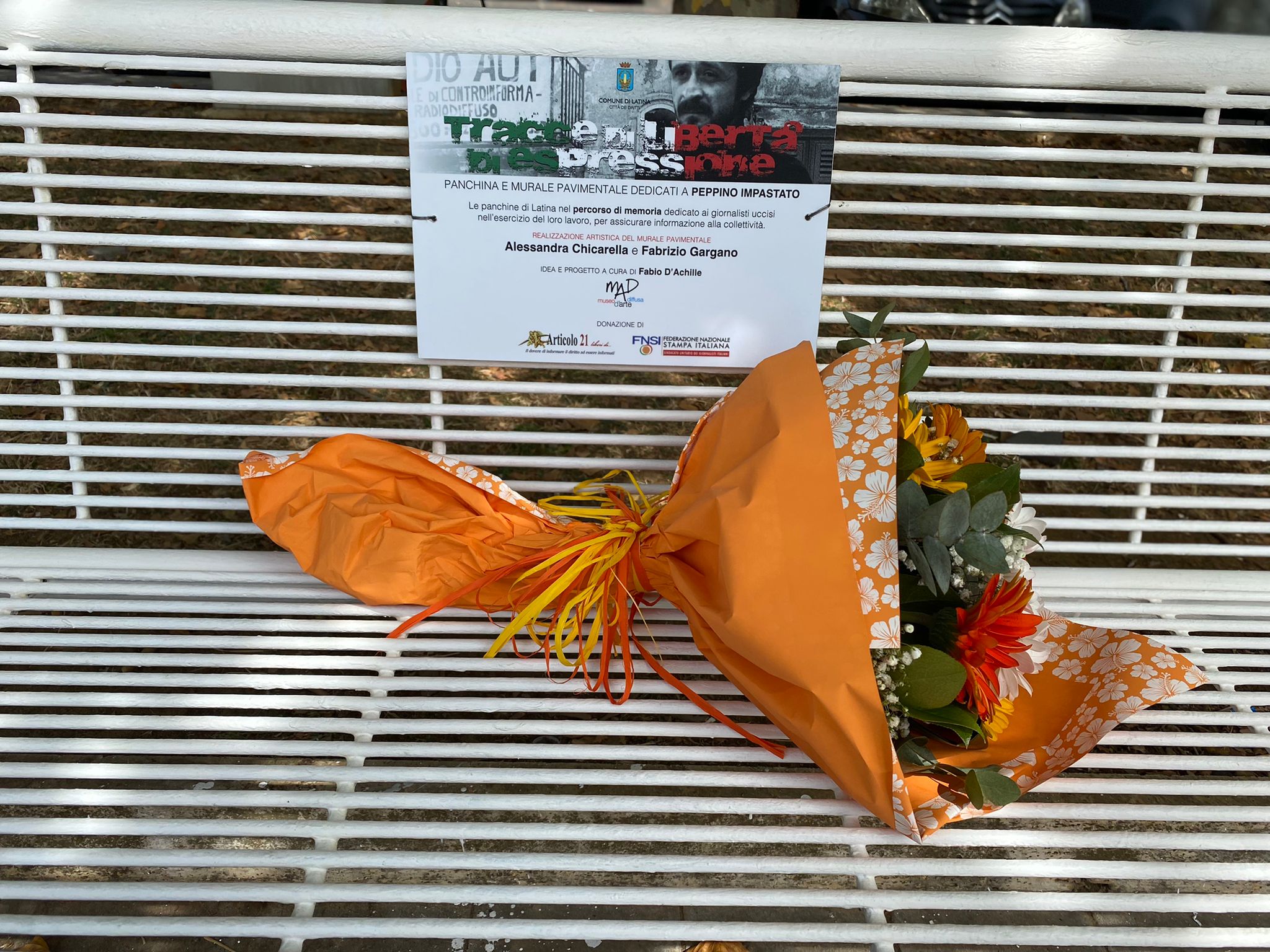Gianluca Tucci depone i fiori sulla panchina dedicata a Peppino Impastato in un angolo della città di Latina che fino a ieri era solo un parcheggio e quel gesto, fatto un liceale che pochi minuti prima ha pronunciato frasi da brividi sul “bisogno di libertà di espressione”, è il sigillo ad una mattinata che parla il linguaggio del giornalismo impegnato, utile, anzi necessario nelle democrazie, linea di demarcazione con i regimi. “Siamo qui per ricordare quanto sia importante l’informazione e quanto sia costata a chi ha voluto farla per noi. E’ davvero molto importante che questa panchina venga inaugurata oggi, il giorno in cui tanti giovani si stanno cimentando con il tema della maturità e stanno analizzando il pensiero critico, il pensiero libero”. Le frasi di Gianluca sono le più applaudite alla cerimonia che ha intitolato sia la panchina che il murale dedicato al giornalista ucciso nel 1978. Prima di lui il sindaco di Latina, Damiano Coletta, aveva ribadito l’impegno dell’amministrazione ” a fare di Latina la città dei diritti e della legalità, grazie al lavoro di squadra e alla partecipazione di tanti cittadini e cittadine, tanti giovani”. Per il Presidente della Fnsi, Giuseppe Giulietti ,”il lavoro fatto a Latina è emblematico di quanto conti l’impegno civico nella difesa dell’articolo 21 della Costituzione e quanto sia necessario conservare la memoria di quelli come Peppino, di cui, va ricordato anche questo, subito dopo la morte fu detto che era un terrorista. La mafia e l’illegalità si combattono ogni giorno con questi gesti; in questo senso la città di Latina può diventare la capitale morale della rete delle città che hanno cura e hanno a cuore la nostra Costituzione”. Giulietti, anche a nome di Articolo 21, ha portato un messaggio di saluto e di ringraziamenti del fratello di Peppino, Giovanni Impastato. Nel corso della cerimonia il Prefetto vicario di Latina, Monica Perna, ha ricordato le fonti giuridiche della libertà di espressione e il valore che esse assumono nella democrazia italiana, mentre il questore di Latina, Michele Spina, ha sottolineato la “rilevanza della partecipazione dei giovani, degli studenti di questa città, perché sono loro i destinatari del messaggio di legalità e di rispetto delle regole, di denuncia di ciò che non va, come ci insegna l’esempio di Peppino Impastato”. Anche per il Presidente della Provincia Gerardo Stefanelli l’intitolazione della panchina può essere un passo importante per implementare iniziative culturali e di legalità su tutto il territorio. La panchina dedicata a Impastato è una delle tappe previste dal percorso “Tracce di libertà di espressione” promosso da Articolo 21 insieme alla Fnsi, al Comune di Latina e all’associazione Mad, rappresentata ieri da Fabio D’Achille che ha annunciato la disponibilità a procedere con “altre tracce come questa” insieme agli artisti che hanno realizzato il murale della piazza, ossia Alessandra Chicarella e Fabrizio Gargano. Il progetto prevede la realizzazione di un percorso nella città di Latina che da largo Impastato arrivi fino a piazza Alpi con tappe dedicate ai giornalisti uccisi.