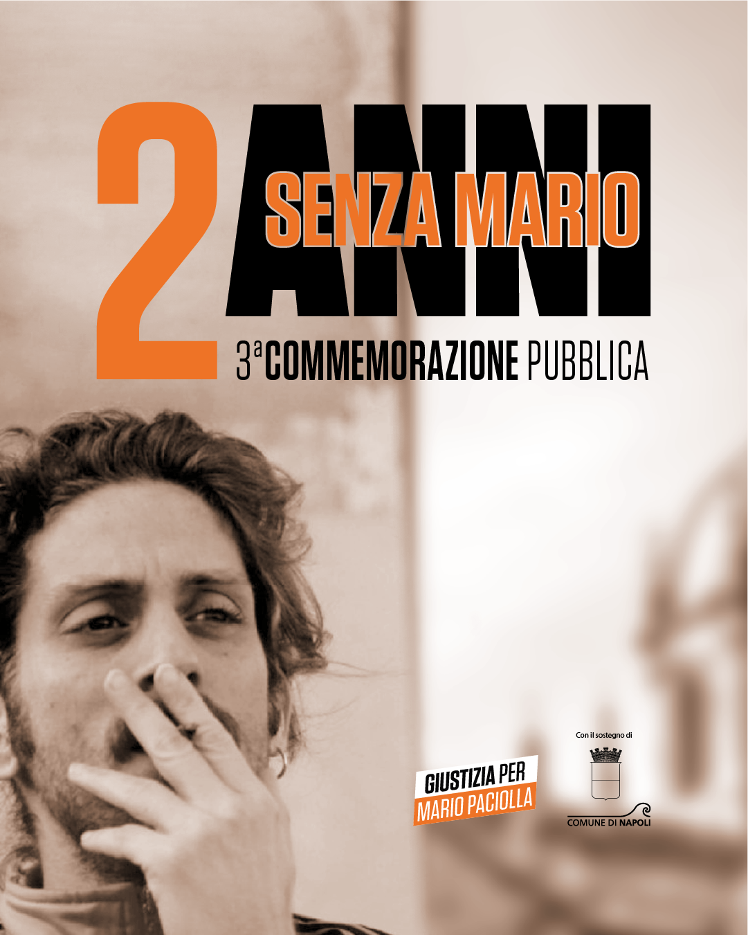A distanza di 2 anni da quel tragico 15 Luglio, famiglia e amici di Mario, con il supporto del Comune di Napoli, invitano tutti ad un evento in suo ricordo: Venerdì 15 luglio alle ore 18:00, presso il convento di San Domenico Maggiore nella Sala del Capitolo, ricorderemo Mario per chiedere insieme giustizia e verità.