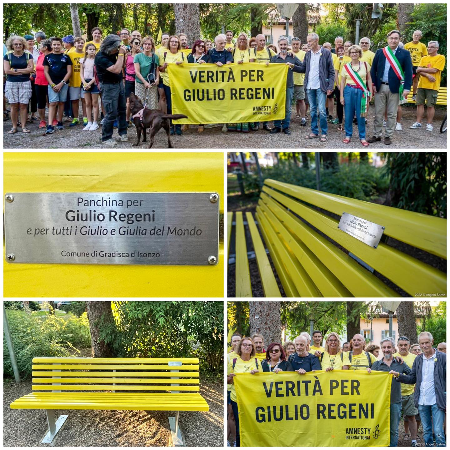Una panchina tutta gialla, tutto per Giulio Regeni e per tutti i Giulio del mondo su cui non c’è verità, non c’è giustizia, non c’è pace. E’ stata installata dal Comune di Gradisca d’Isonzo, nel Parco Pineta tra Via Carducci e Viale Regina Elena. E’ la panchina gialla n. 80, strenuamente voluta dall’amministrazione, dalla sindaca Linda Tomasinsig, dall’assessora Francesca Colombi ed dall’assessore Marco Zanolla. Continua la testimonianza civile accanto alla famiglia Regeni e a loro legale, l’avvocato Alessandra Ballerini, per continuare a credere che al di là dello stop procedurale ci sarà una ripresa della strada della giustizia per Giulio Regeni la cui morte finora è rimasta impunita.