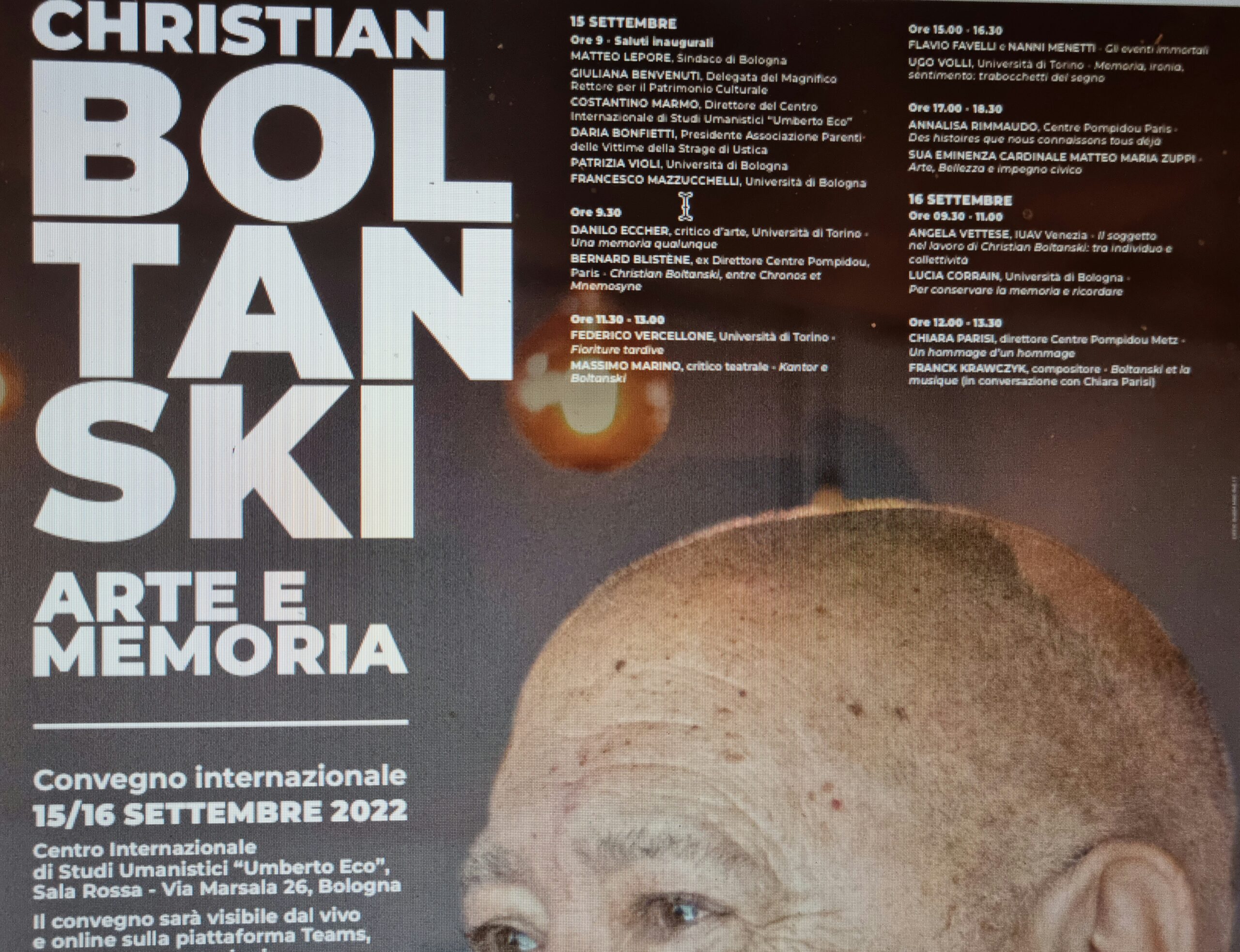 A Bologna il 15 e 16 settembre docenti universitari, critici, organizzatori culturali ricorderanno la figura e l’opera di Christian Boltanski in un convegno organizzato dal “centro internazionale di Studi umanistici Umberto Eco” (via Marsala) dell’Università di Bologna con l’Associazione dei Parenti delle Vittime della Strage di Ustica.