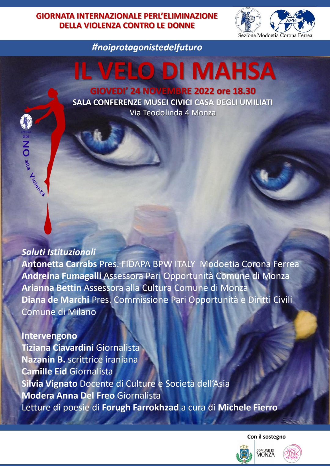 Il velo di Mahsa: è dedicata proprio a lei, a Masha Amini, uccisa in Iran per aver indossato l’hijab in modo sbagliato, il titolo della tavola rotonda organizzata da Fidapa, sezione Modoetia corona ferrea, giovedì 24 novembre alle 18.30 a Monza. L’iniziativa si tiene alla vigilia della giornata mondiale per l’eliminazione della violenza contro le donne e ha per oggetto la “Rivoluzione delle ragazze” in corso in Iran , che da quell’orribile e insensato omicidio ha preso spunto.