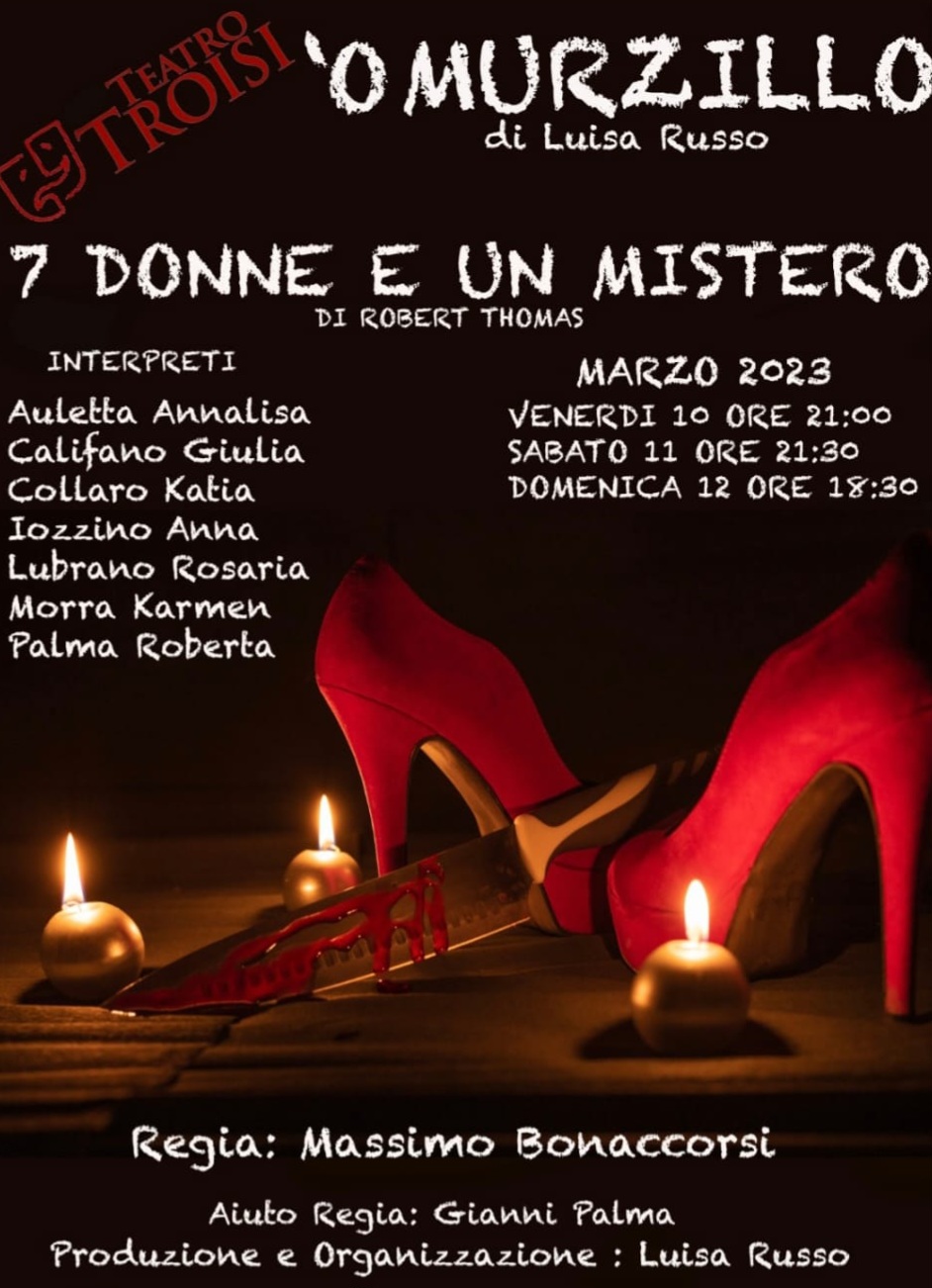 7 donne dai caratteri diversi, 7 donne decise, capricciose. Una casa e un inverno rigido. Una Commedia esilarante, brillante, divertente e.. venite a scoprirlo. Vi aspettano il giorno 10.11 e 12 marzo al Teatro Troisi.