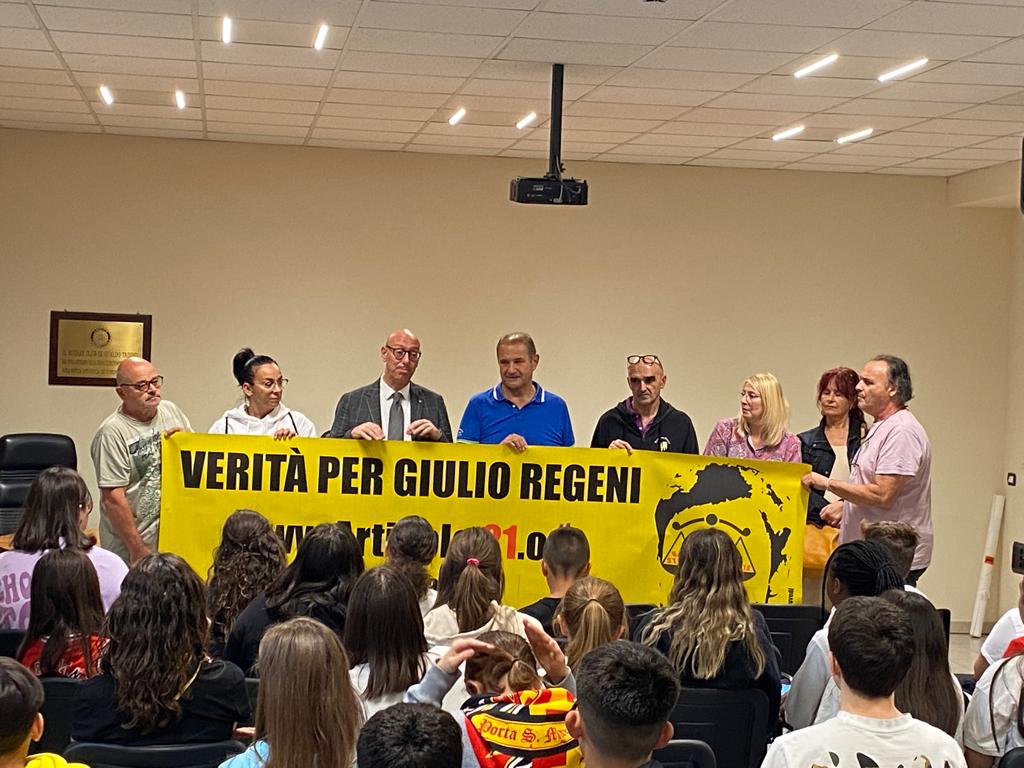 Per ricordare tutto ciò, presso l’aula magna dell’Istituto Comprensivo di Gualdo Tadino, si è così svolto un momento di sostegno a Giulio Regini, come voluto dalla sua famiglia, con la partecipazione del Sindaco di Gualdo Tadino, Massimiliano Presciutti, del presidio di Gualdo Tadino di Articolo 21 e degli studenti dell’Istituto Comprensivo di Gualdo Tadino.
