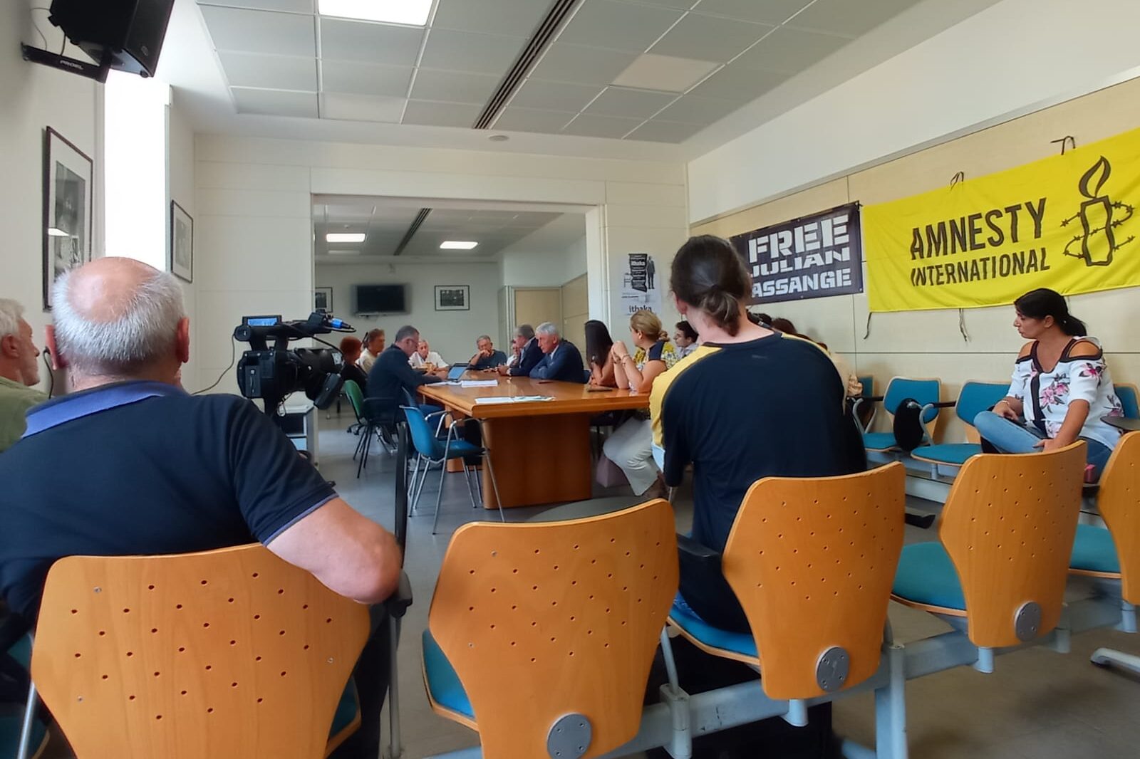 Un altro incontro importante su lla vicenda di Assange E’ importante e significativa che sia venuta dal Consiglio Comunale questa istanza, una città che ha sempre lottato per la libertà. La FNSI ha conferito la prima tessera ad Assange Non si tratta di un simbolo, non gli viene riconosciuto lo status di un giornalista, reo di aver diffuso verità importanti per tutti noi Art.21 anche ci crede da sempre, è diventato per tutti noi l’emblema per la battaglia per la libertà di stampa, eppure non se ne parla sui media nazionali: traffico di armi, dossier di stato: è importante la partecipazione popolare, che ci sia la gente E’ importante la scorta mediatica per i giornalisti minacciati