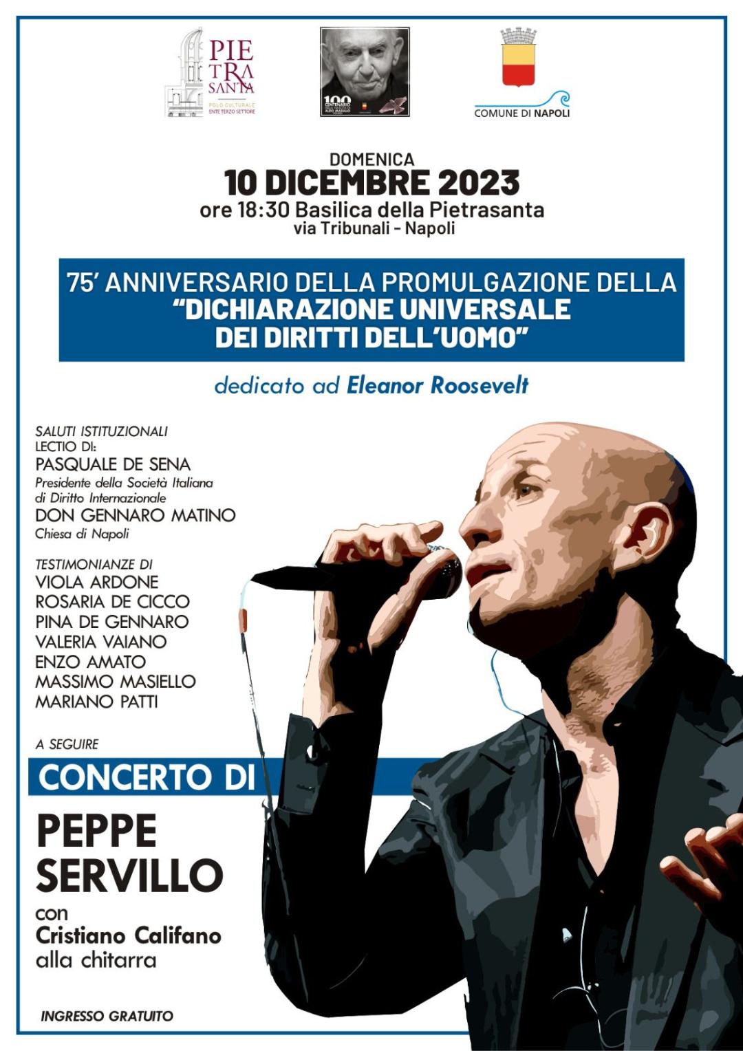 Nella Basilica della Pietrasanta Napoli (domani 10 dicembre), nel cuore del Centro Storico Unesco, ricorderà il 75 anniversario della promulgazione della Dichiarazione universale dei diritti umani. La serata è dedicata ad Eleanor Roosevelt.