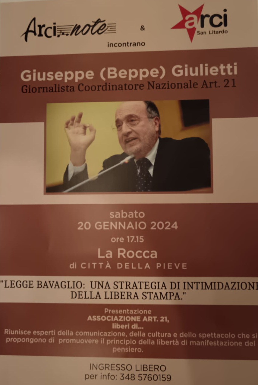 Sarà presente il coordinatore nazionale Beppe Giulietti.