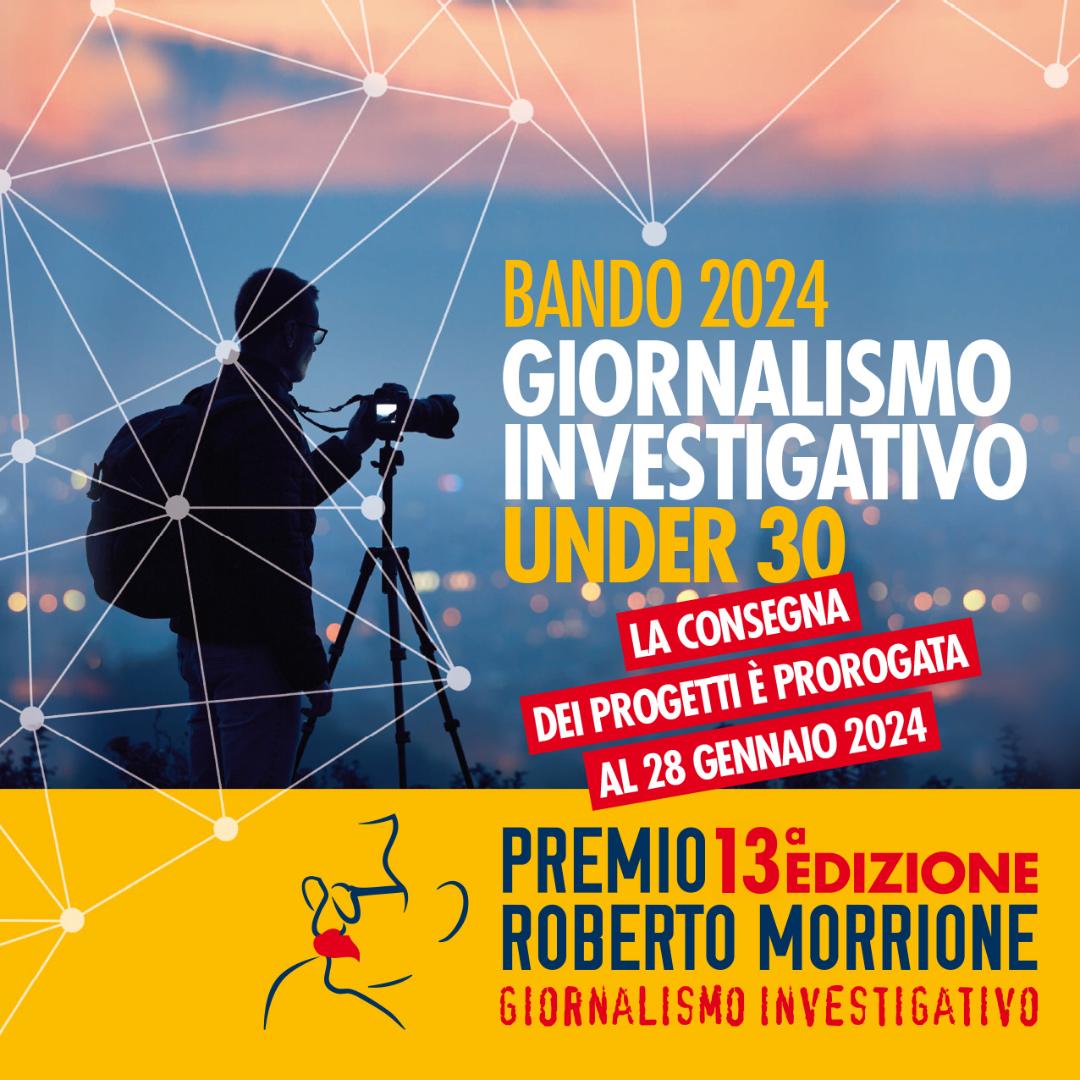 Promosso dall’Associazione Amici di Roberto Morrione in collaborazione con la Rai, finanzia la realizzazione di progetti di inchiesta su temi rilevanti per la vita politica, sociale, economica, culturale dell’Italia e dell’Europa, quali l’ambiente, la legalità, i diritti umani e civili, lo sviluppo tecnologico e le attività economiche. I partecipanti non devono aver superato i 30 anni di età e possono concorrere come singoli o in gruppi di massimo tre componenti.